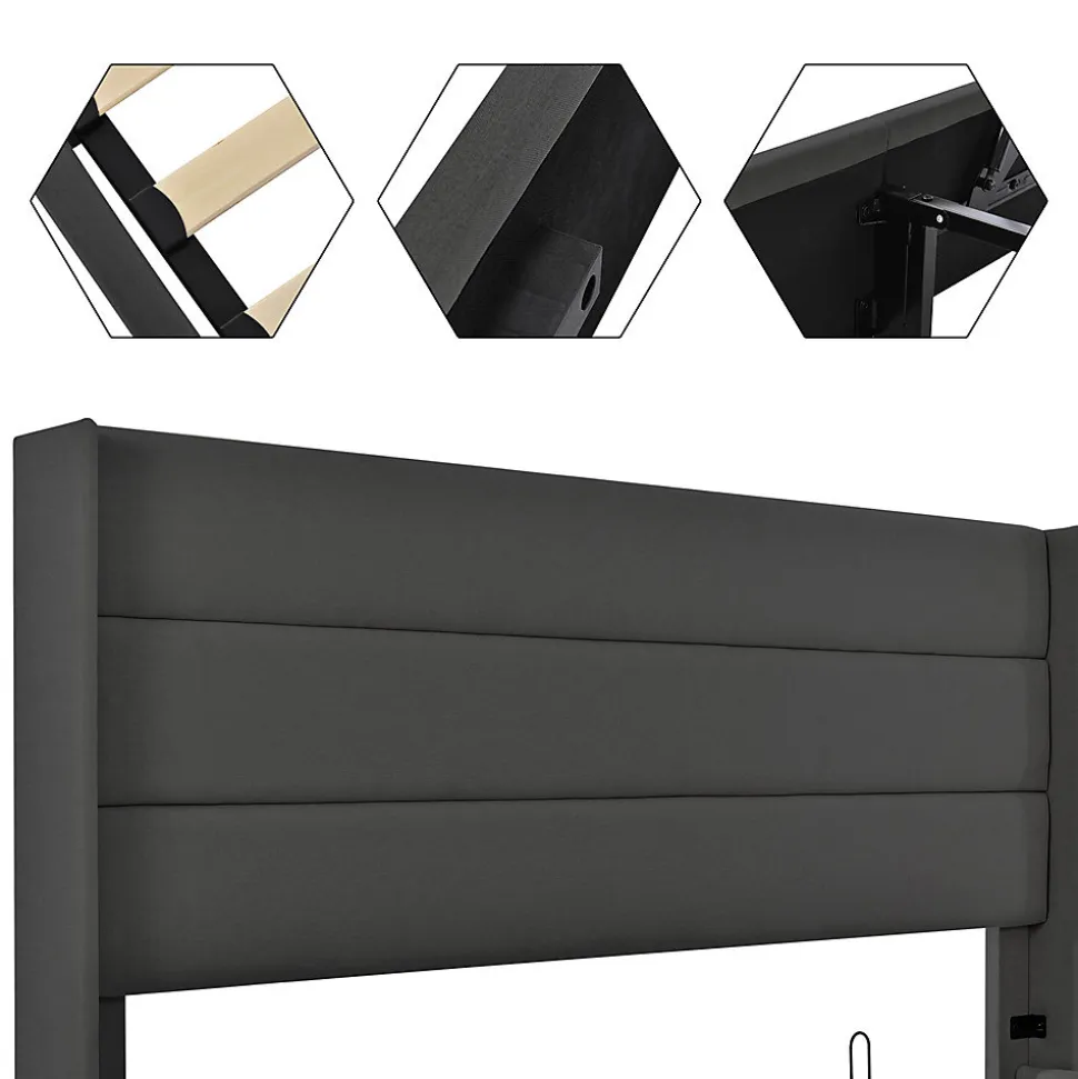 Dimensions totales :214.5×153.5x114cm(LxLxH)Capacité de charge :181KG/400LBSCouleur :grisMatériau du plateau :linHauteur du pied de lit :28cmSurface de couchage :140×200 cmNombre de paquets : 2Montage nécessaire : OuiType de matelas :Sans matelasDesign moderne : La tête de lit présente un design unique qui assemble trois panneaux de tissu rembourrés. Le design simple des coutures deviendra la pièce maîtresse de votre chambre à coucher. Ce lit est disponible en deux couleurs : gris et beige.Un design humain :Ce produit est également doté d’une sangle de traction en tissu qui permet de relever et d’abaisser facilement le sommier hydraulique. La tête de lit rembourrée vous permet de lire un livre confortablement dans votre lit et offre un soutien confortable à votre dos.Barre hydraulique – Espace de rangement :Grand sommier sous le sommier à lattes rabattable avec beaucoup d’espace de stockage pour ranger les couvertures, les oreillers ou le linge de lit, le sommier à lattes peut être facilement replié par le vérin de levage.Construction solide :Fabriqué à partir de matériaux de la plus haute qualité pour garantir que le lit durera de nombreuses années, des raccords robustes et des pieds de support supplémentaires assurent la stabilité globale du lit.Informations détaillées :Le lit est disponible en TROIS tailles, 140*200cm,160*200cm et 180*200 cm.Pour réduire le risque de dommages, ce cadre de lit est expédié dans 2 boîtes et ils peuvent arriver à des jours différents. Si les deux colis sont arrivés mais qu’il manque des pièces, veuillez contacter le service clientèle.Remarques :En raison des mesures manuelles, une erreur de 2 à 3 cm peut se produire.Ce produit sera divisé en deux colis pour la livraison. Il se peut qu’ils n’arrivent pas en même temps. Veuillez patienter.