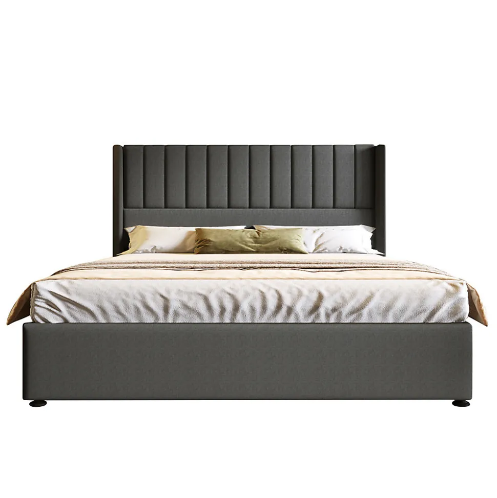 Dimensions totales :214.5x180x113cm(LxLxH)Capacité de charge :226KG/500LBSCouleur :grisMatériau du plateau :Bois massif+lin+métalDistance de la tête de lit :27cmNombre de paquets : 2Type de matelas :Sans matelasMontage nécessaire : OuiContenu du paquet :Cadre de lit+cadre à lattesDesign moderne:Les rayures verticales à la tête du lit ajoutent une touche de design. La moulure latérale incurvée de la tête de lit est à la fois esthétique et pratique, car elle empêche le matelas de glisser.Design humain:Le produit est également équipé d’une sangle de traction en tissu pour faciliter l’élévation et l’abaissement du sommier hydraulique. La tête de lit rembourrée vous permet de lire un livre confortablement dans votre lit et offre un soutien confortable à votre dos.Barre hydraulique – Espace de rangement:Grand sommier sous le sommier à lattes repliable avec beaucoup d’espace de stockage pour ranger les couvertures, les oreillers ou le linge de lit, le sommier à lattes peut être facilement replié par le vérin de levage.Construction solide:Fabriqué à partir de matériaux de haute qualité, ce lit durera de nombreuses années. Des fixations robustes et des pieds de soutien supplémentaires assurent la stabilité générale du lit.Informations détaillées:Le lit est disponible en trois tailles, 140*200cm, 160*200cm et 180*200 cm. Pour réduire le risque de dommages, ce cadre de lit est expédié dans deux boîtes et ils peuvent arriver à des jours différents. Si les deux colis sont arrivés mais qu’il manque des pièces, veuillez contacter le service clientèle.Instructions complètes et simples:Le lit est livré à plat pour une livraison facile, et nous avons des instructions étape par étape pour un assemblage facile.Détails raffinés:Ce cadre de lit est rembourré sur tout son pourtour et comporte une tête de lit moelleuse.