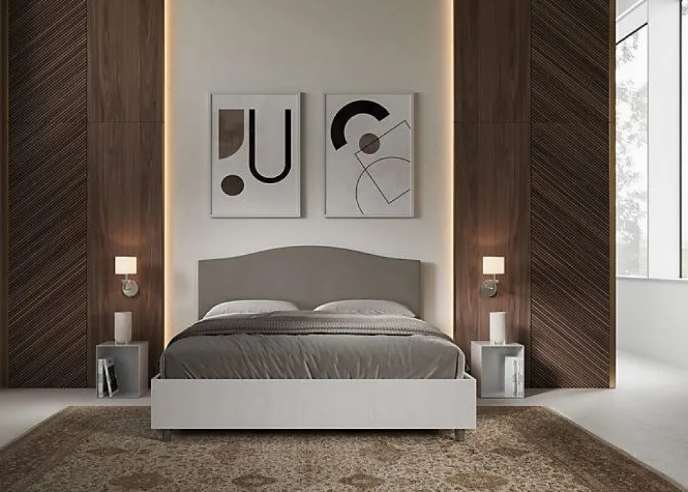 Lit double Grace 160×200 avec tête de lit et lit en panneaux de mélamine, avec tête de lit recouverte en simili cuir, particulièrement polyvalent et facilement combinable avec n’importe quel style d’ameublement.Le lit double Grace 160×200 se caractérise par un style minimal et polyvalent grâce aux surfaces simples et linéaires typiques du bois et au revêtement de la tête de lit en simili cuir.La tête de lit avec revêtement en simili cuir, associée aux propriétés du bois, donnera à votre chambre un environnement chaleureux et accueillant.Lit fourni sans sommier, prévu pour sommier 160×200 h.4 cm et matelas 160×200 cm – Matelas non inclusHousse de tête de lit amovible.Produit ItyhomeFabriqué en ItalieDimensions lit : L.167 P.208 H.115 cmHauteur des pieds : 12 cmHauteur du lit : 26 cmHauteur du lit depuis le sol : 38 cm