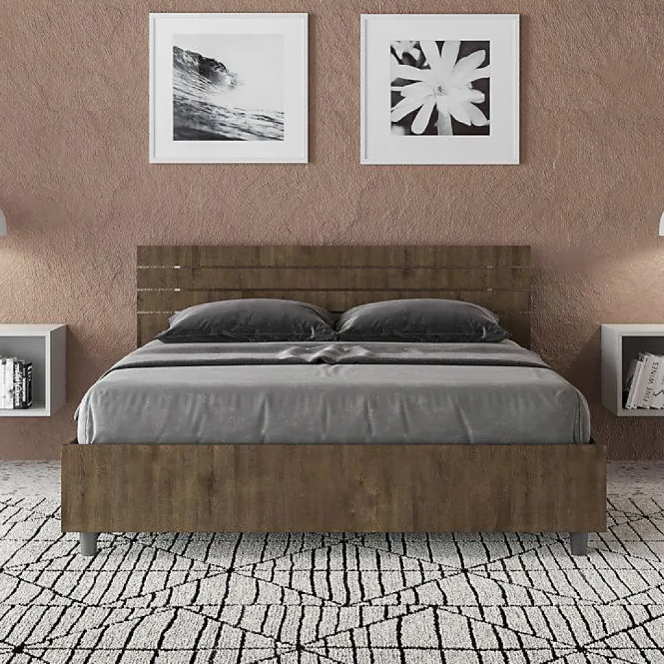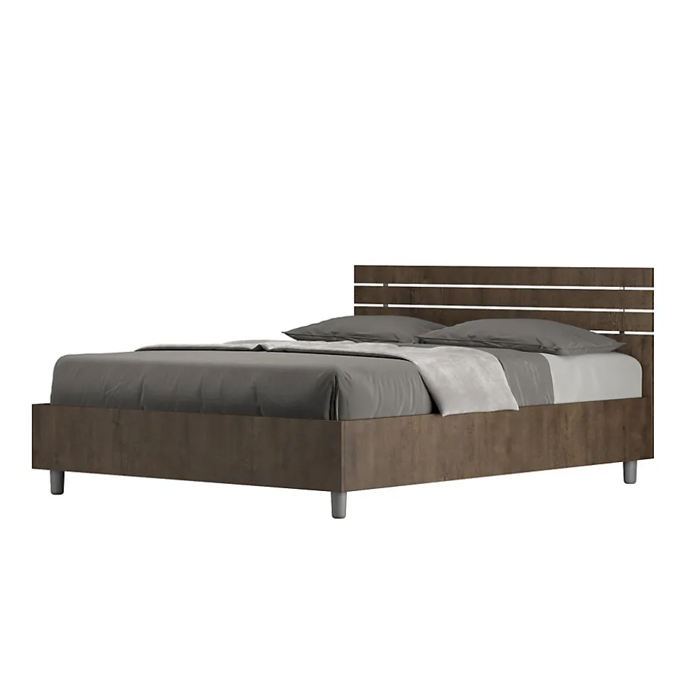 Lit français 140×200 Ankel avec tête de lit et lit en panneaux de mélamine, particulièrement polyvalent et facilement combinable avec n’importe quel style d’ameublement.Le lit français Ankel 140×200 se caractérise par un style minimal et essentiel grâce aux surfaces simples et linéaires.La combinaison du style et des matériaux utilisés pour la structure confère à la pièce une atmosphère chaleureuse et accueillante, typique du bois.Lit fourni sans sommier, prévu pour sommier 140×200 h.4 cm et matelas 140×200 cm – Matelas non inclusProduit ItyhomeFabriqué en ItalieDimensions lit : L.147 P.209 H.91 cmHauteur des pieds : 12 cmHauteur du lit : 26 cmHauteur du lit depuis le sol : 38 cm