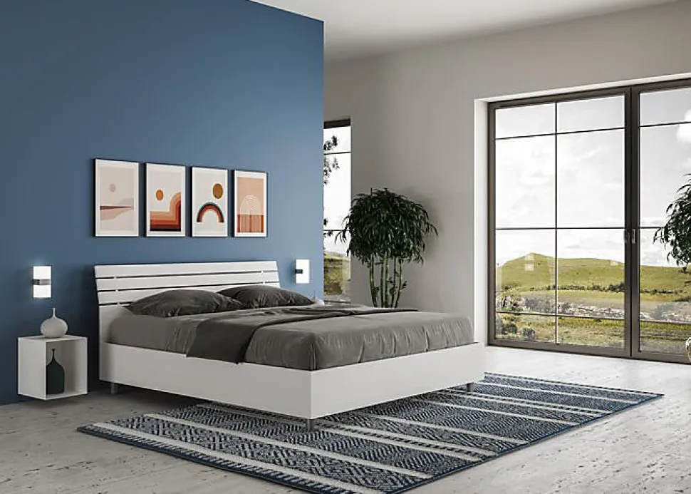 Lit double Ankel 160×200 avec tête de lit et lit en panneaux de mélamine, particulièrement polyvalent et facilement combinable avec n’importe quel style d’ameublement.Le lit double Ankel 160×200 se caractérise par un style minimal et essentiel grâce aux surfaces simples et linéaires.La combinaison du style et des matériaux utilisés pour la structure confère à la pièce une atmosphère chaleureuse et accueillante, typique du bois.Lit fourni sans sommier, prévu pour sommier 160×200 h.4 cm et matelas 160×200 cm – Matelas non inclusProduit ItyhomeFabriqué en ItalieDimensions lit : L.167 P.214 H.90 cmHauteur des pieds : 12 cmHauteur du lit : 26 cmHauteur du lit depuis le sol : 38 cm