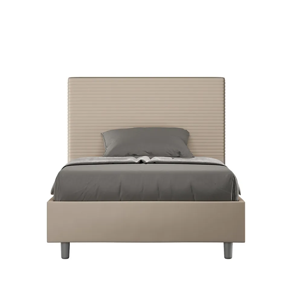 Lit queen size Focus 120×200 avec tête de lit et lit rembourrés, revêtement en simili cuir, particulièrement polyvalent et facilement combinable avec n’importe quel style d’ameublement.Le lit queen size Focus 120×200 se caractérise par un style moderne et élégant, mis en valeur par la tête de lit matelassée recouverte de simili cuir.La présence du matériau en simili cuir, en plus de donner à la pièce une atmosphère accueillante et invitante, offre la commodité d’un nettoyage rapide et facile, grâce à l’utilisation d’un simple chiffon en microfibre.Lit fourni avec sommier à lattes, prévu pour un matelas 120×200 cm – Matelas non inclusCouvre-lit non amovible.Produit ItyhomeFabriqué en ItalieDimensions lit : L.135 P.220 H.122 cmHauteur des pieds : 12 cmHauteur du lit : 27 cmHauteur du filet depuis le sol : 39 cm