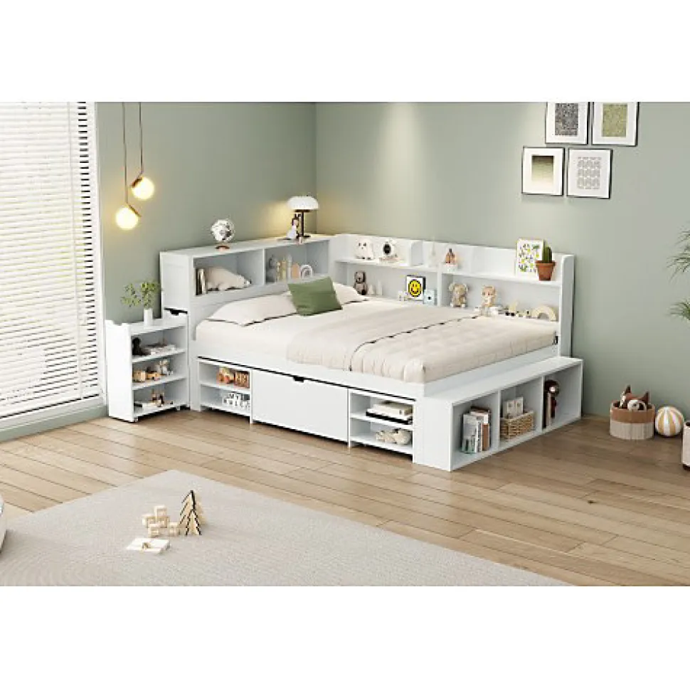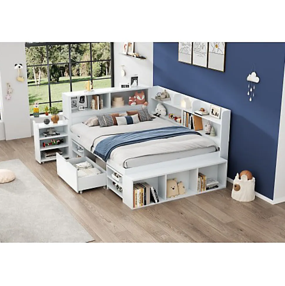 •【Simple et beau】Le design blanc est simple et élégant, adapté à une variété de styles de décoration d’intérieur, facile à intégrer dans la chambre d’enfant et rehausse la beauté de la pièce•【Conception multifonctionnelle】Ce lit en bois combine plusieurs fonctions telles qu’un lit, une bibliothèque et une armoire de rangement, maximisant l’utilisation de l’espace et créant un environnement de vie et d’apprentissage bien organisé•【Grand espace de stockage】Il dispose de bibliothèques mobiles à la tête du lit, de tiroirs sur le côté et de compartiments ouverts autour du lit, permettant de ranger vêtements, jouets, livres et autres objets•【Avec sommier à lattes】Le cadre de lit est équipé de lattes, augmentant la stabilité et la durabilité tout en assurant une bonne ventilation pour garder le matelas au sec•【Facile à installer】Le lit est facile à assembler avec les instructions détaillées fournies, même sans expérience préalable, permettant un montage rapide et sans effort