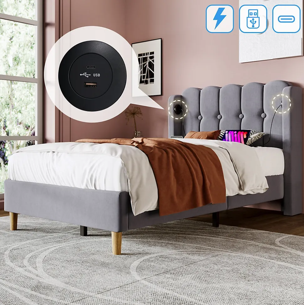 - 【Station de recharge intégrée】 Les ports USB et Type-C sur les côtés de la tête de lit vous permettent de charger facilement vos appareils électroniques sans quitter votre lit. Vous économisez du temps et de l’énergie tout en ayant vos appareils à portée de main.