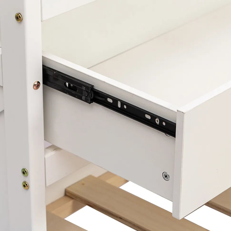 1. Table de chevet avec compartiment de rangement et port USB – Ce lit en bois mesure 190 x 90 cm. La table de chevet est équipée d’un compartiment de rangement qui s’ouvre pour un rangement pratique. Bien organisée, elle offre une grande capacité de rangement. Le port USB intégré au lit permet de recharger vos appareils au quotidien. 2. Lit gigogne et tiroirs – Ce lit répond efficacement à vos besoins d’espace. En plus du lit principal gigogne, un lit gigogne se trouve en dessous. De plus, ce lit dispose de deux tiroirs intégrés qui répondent à vos besoins de rangement tout en optimisant l’espace. 3. Lit en bois multifonctionnel – La conception de ce lit en bois maximise l’espace de votre chambre. Il offre non seulement un espace de couchage confortable, mais la table de chevet peut également servir de rangement, de support pour vos objets et de point de recharge pour vos appareils. Ce lit est également équipé d’un lit gigogne et de tiroirs, vous permettant ainsi de maximiser votre espace. 4. Grand espace de rangement – Ce lit dispose non seulement d’un compartiment de rangement dans la tête de lit, mais aussi de deux tiroirs de rangement pour répondre facilement à vos besoins de rangement. 5. Cadre de lit facile à monter – Les dimensions totales du lit sont de 213 x 94,5 x 105 cm avec un sommier à lattes (matelas non inclus). Ce lit en bois, avec poignées et tiroirs, est expédié d’Allemagne en deux colis, qui peuvent parfois ne pas arriver le même jour. Nous vous remercions de votre patience et vous prions de bien vouloir patienter 2 à 3 jours supplémentaires.