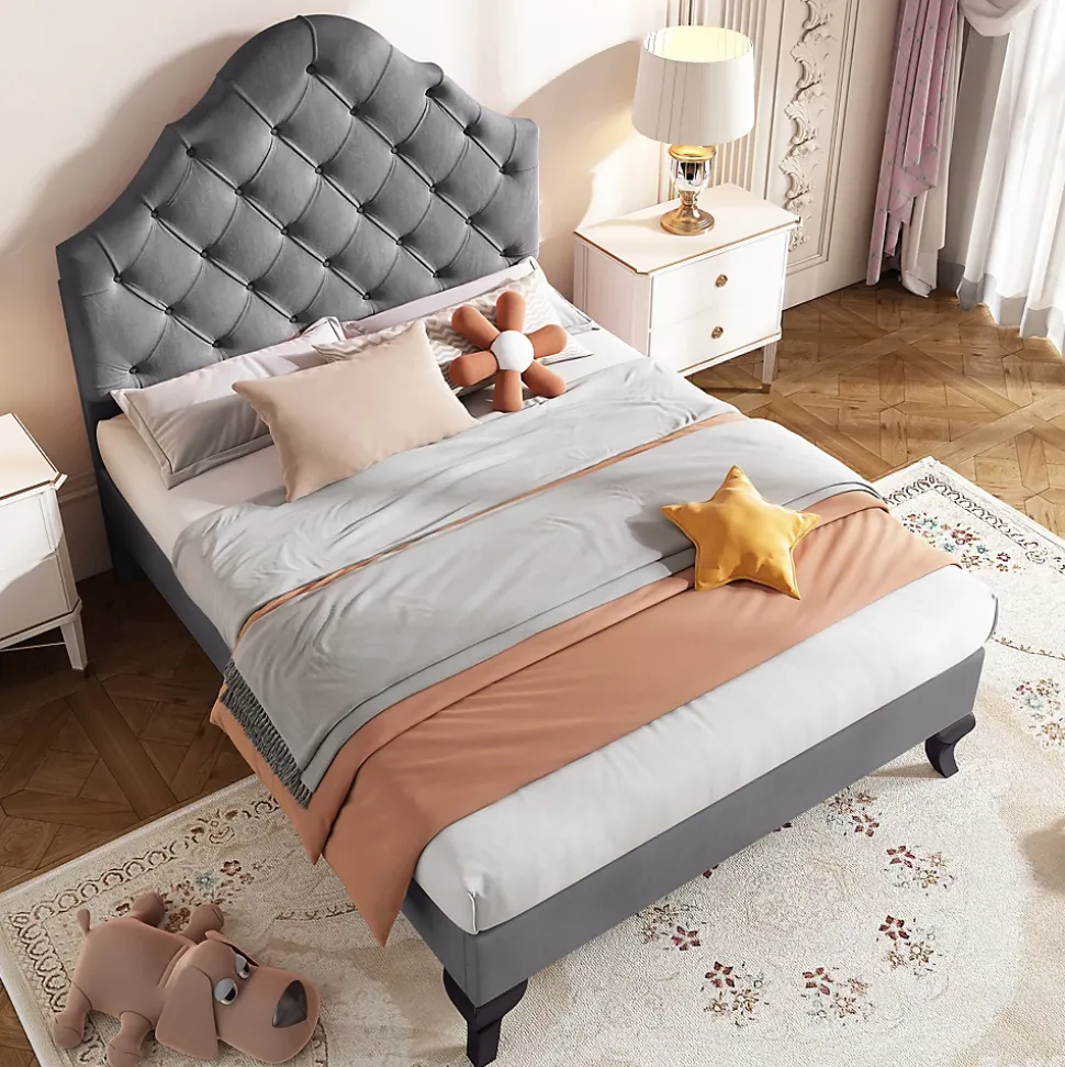 - 【Design intemporel】Ce lit en tissu rembourré combine un style classique et moderne grâce à son tête de lit capitonnée, offrant un point d’appui confortable pour lire ou regarder la télévision, tout en ajoutant une élégance subtile à votre chambre.