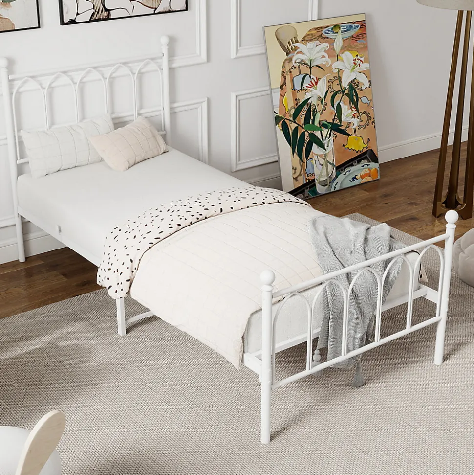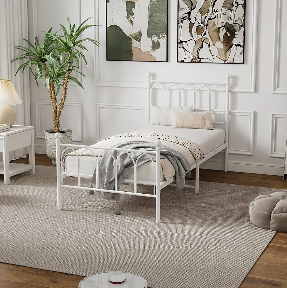 ▶ ▶ Détails ▶────────────────✦ Type de produit : Lit en métal✦ Dimensions totales du produit : 206,5 × 91 × 102,5 cm (L x l x H)✦ Poids total du produit : 16,5 kg✦ Capacité de charge : 120 kg✦ Dimensions du couchage : 90 × 200 cm (matelas non inclus)✦ Couleur : Blanc✦ Matériau : Métal✦ Nombre de lattes : 11✦ Matelas inclus : Non✦ Nombre de colis : 1✦ Outils supplémentaires requis : Tous les outils/tournevis inclus► Remarques ►※ En raison de mesures manuelles, une erreur de 2-3 cm peut se produire.※ En raison des conditions d’éclairage, il peut exister une légère différence de couleur entre l’image du produit et le produit réel. Veuillez vous référer au produit réellement reçu.※ Si vous avez des questions lors de l’installation, veuillez nous contacter dès que possible.