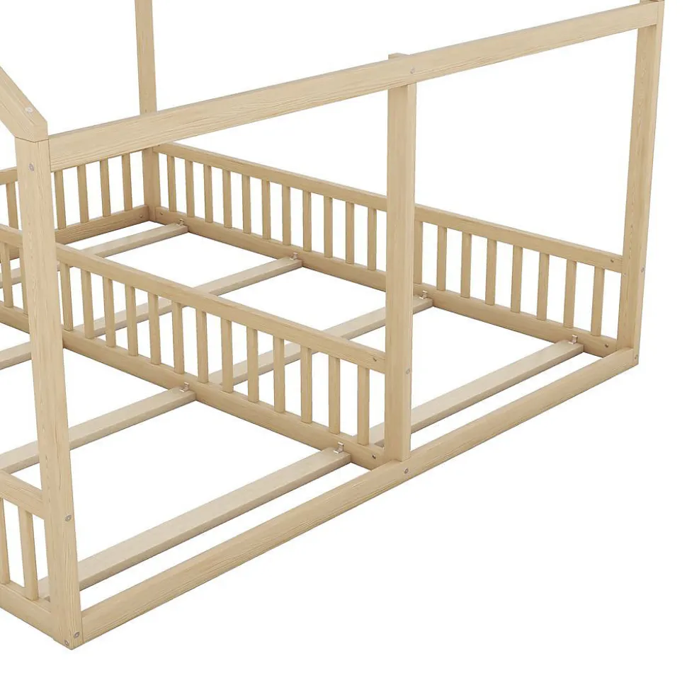 Lit superposé 2 en 1 (90×200 cm) modèle maisonCaractéristiques principalesDimensions : 204x187x168 cm (Lxlxh)Matériau : Pin naturel + MDFCapacité : 100 kg par lit (2 lits)Sécurité : Barrières de protection intégréesSommier : 8 lattes en boisStyle : Design maison avec toit décoratifLivraison1 colis : 199x32x15,5 cm (24,42 kg)Poids total : 23 kgAvantages Deux lits superposés sécurisésDesign original de maison Structure en pin robuste et silencieuse Montage facile avec notice Convient pour chambre partagéeInformations complémentairesMatelas 90×200 cm non inclus (15-20 cm recommandé)Origine : ChineTemps de montage estimé : 2 heuresIdéal pour 2 enfantsSolution pratique et ludique pour chambre d’enfants