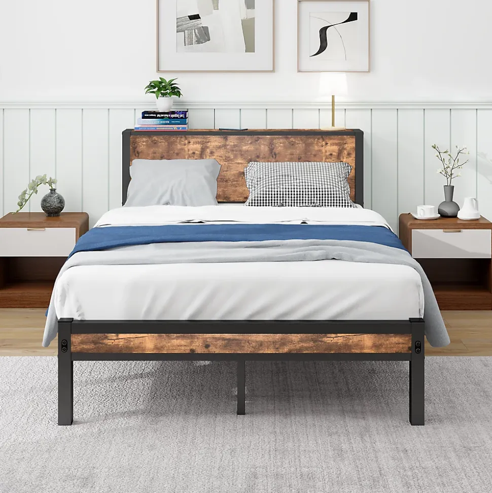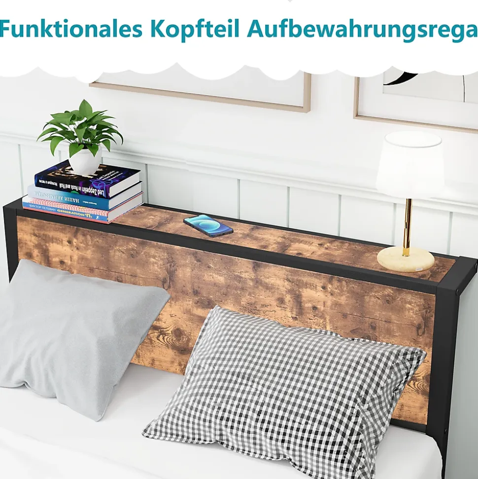 ▶ ▶ Détails ▶────────────────● Type de produit : Lit simple● Matériau : MDF + Métal● Couleur : Marron● Dimensions du lit : 120 × 200 cm● Dimensions totales : 208 × 120 × 90 cm (L × l × H)● Charge maximale utilisateur : 227 kg● Style : Antique / Décontracté / Classique● Scène applicable : Chambre à coucher● Construction : 13 lattes en métal + 9 pieds métalliques stables● Espace de rangement sous le lit : 27 cm● Poids net : 23,05 kg● Nombre de colis : 1► Remarques ►※ Ce produit est livré en 1 colis.※ En raison de mesures manuelles, une erreur de 2 à 3 cm peut se produire.※ Toutes les images du produit sont prises avec des produits réels ; de légères variations de couleur peuvent se produire en raison de la lumière et de l’écran.※ Montage requis – suivez les instructions ; toutes les pièces sont clairement étiquetées et l’outil est inclus dans le colis.