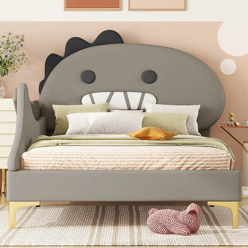 Description du produitApportez une touche ludique et originale à la chambre de votre enfant avec ce lit dinosaure 90×200 cm. Sa tête de lit réaliste en forme de dinosaure, fabriquée en PU et MDF, est à la fois robuste, durable et douce au toucher, offrant un confort optimal pour jouer ou se reposer. Son design unique et enfantin transforme la chambre en espace amusant et stimulant pour l’imagination.Caractéristiques principalesMatériaux de qualité : PU et MDF solides et durables, résistants à la déformation et aux fissures, assurant sécurité et longévité.Design original : Forme de dinosaure en dessin animé qui attire l’attention et stimule la créativité des enfants.Facile à nettoyer : Surface lisse et résistante, simple à essuyer en cas de salissures.Polyvalent : Couleur et design s’intègrent facilement à différents styles de chambres d’enfants.Livraison pratique : Expédié depuis l’Allemagne en 2 colis, pouvant arriver à des dates différentes.Spécifications techniquesDimensions totales : 209 × 90 × 110 cmDimensions intérieures du lit : 90 × 200 cmCouleur : GrisMatériaux : PU + MDFHauteur totale : 110 cmNombre de lattes : 12Capacité de poids : 150 kgÉpaisseur recommandée du matelas : 15–20 cmNombre de colis : 2Montage requis : OuiCe lit combine sécurité, confort et design amusant, idéal pour créer une chambre enfant originale et accueillante.