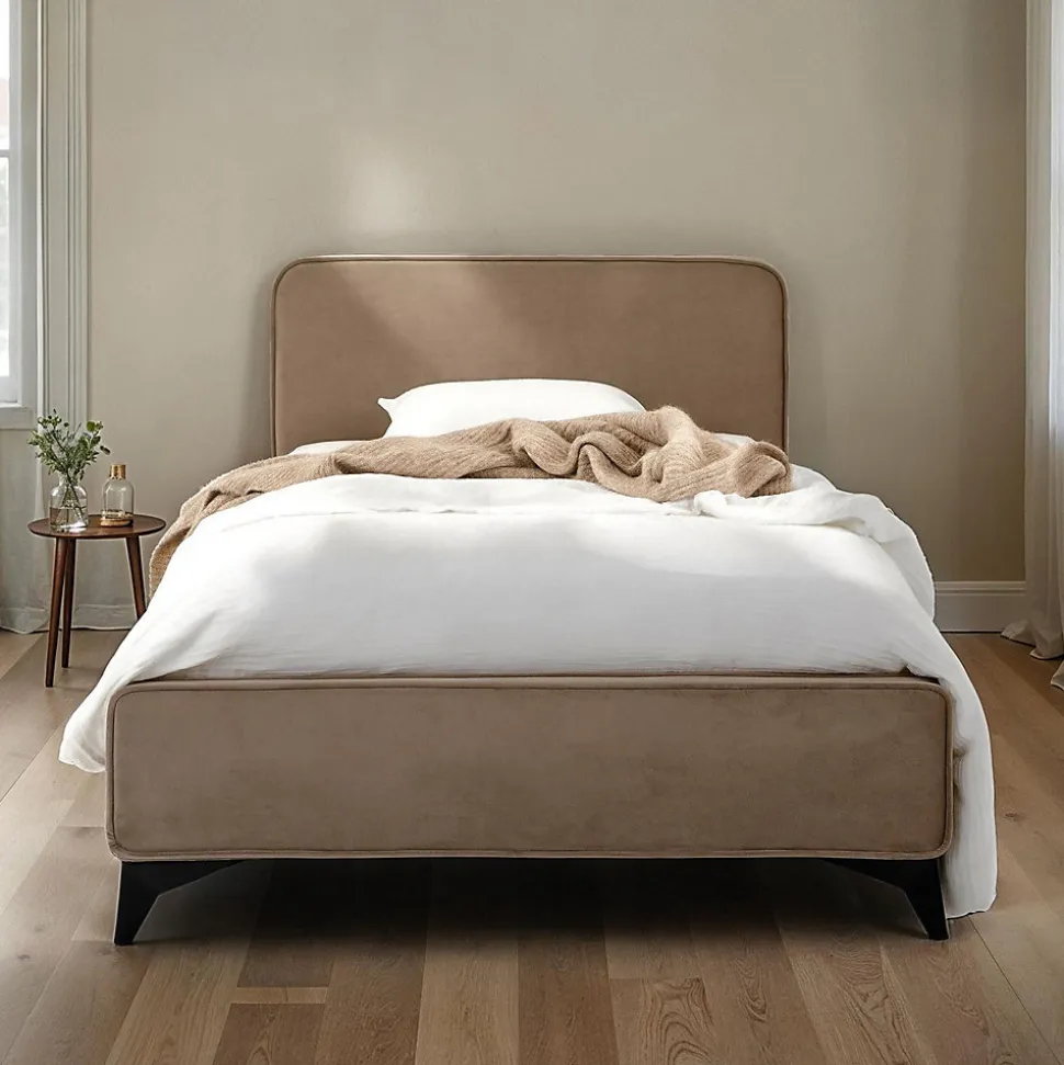 Lit simple Ravello Ce lit une place au design épuré est parfait pour aménager une chambre moderne. Avec son cadre en bois et métal robuste, il est revêtu d’un tissu doux et résistant. La taille de couchage 90×190 cm en fait un choix idéal pour une personne. Son sommier à lattes est inclus, assurant un soutien optimal pour un sommeil réparateur. Parfait pour les chambres d’enfants, d’adolescents ou d’amis. Description des matériaux : – Le cadre du lit est recouvert d’un revêtement en tissu, coloris grège. – Le cadre est en bois et en métal. – Les pieds sont en métal. Caractéristiques du produit : – Taille de couchage : 90 x 190 – Hauteur des pieds : 10,5 cm – Hauteur côté du lit : 20,5 cm – Profondeur de pose du sommier : 3,5 cm – Sommier à lattes inclus Livraison et montage : – Contenu de la livraison : lit et sommier – Article livré en pièces détachées – Assemblage facile grâce à la notice – Livraison par transporteur – Article livré sans décoration – Photo non contractuelle Résumé: – Hauteur cadre de lit: 21 cm – Hauteur pan de lit: 23 cm – Hauteur pied de lit: 23 cm – Hauteur tête de lit: 80 cm – Profondeur d’insertion: 5 cm – Convient uniquement avec: Sommier fagot à lattes – Description du matériel: 100% Polyester – Extras: Avec sommier à lattes – Dimensions monté: 80 x 102 x 204 cm (H x L x L) – Couchage: 90 x 190 cm – Couleur: Gris foncé – Matériel: Métal, Tissu de recouvrement, Bois