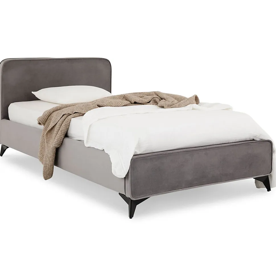 Lit simple Ravello Ce lit une place au design épuré est parfait pour aménager une chambre moderne. Avec son cadre en bois et métal robuste, il est revêtu d’un tissu doux et résistant. La taille de couchage 90×190 cm en fait un choix idéal pour une personne. Son sommier à lattes est inclus, assurant un soutien optimal pour un sommeil réparateur. Parfait pour les chambres d’enfants, d’adolescents ou d’amis. Description des matériaux : – Le cadre du lit est recouvert d’un revêtement en tissu, coloris gris. – Le cadre est en bois et en métal. – Les pieds sont en métal. Caractéristiques du produit : – Taille de couchage : 90 x 190 – Hauteur des pieds : 10 cm – Hauteur côté du lit : 20,5 cm – Profondeur de pose du sommier : 3,5 cm – Sommier à lattes inclus Livraison et montage : – Contenu de la livraison : lit et sommier – Article livré en pièces détachées – Assemblage facile grâce à la notice – Livraison par transporteur – Article livré sans décoration – Photo non contractuelle Résumé: – Hauteur cadre de lit: 21 cm – Hauteur pan de lit: 23 cm – Hauteur pied de lit: 23 cm – Hauteur tête de lit: 80 cm – Profondeur d’insertion: 5 cm – Convient uniquement avec: Sommier fagot à lattes – Description du matériel: 100% Polyester – Extras: Avec sommier à lattes – Dimensions monté: 80 x 102 x 204 cm (H x L x L) – Couchage: 90 x 190 cm – Couleur: Gris – Matériel: Métal, Tissu de recouvrement, Bois