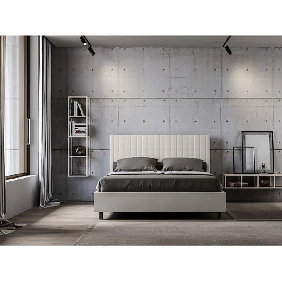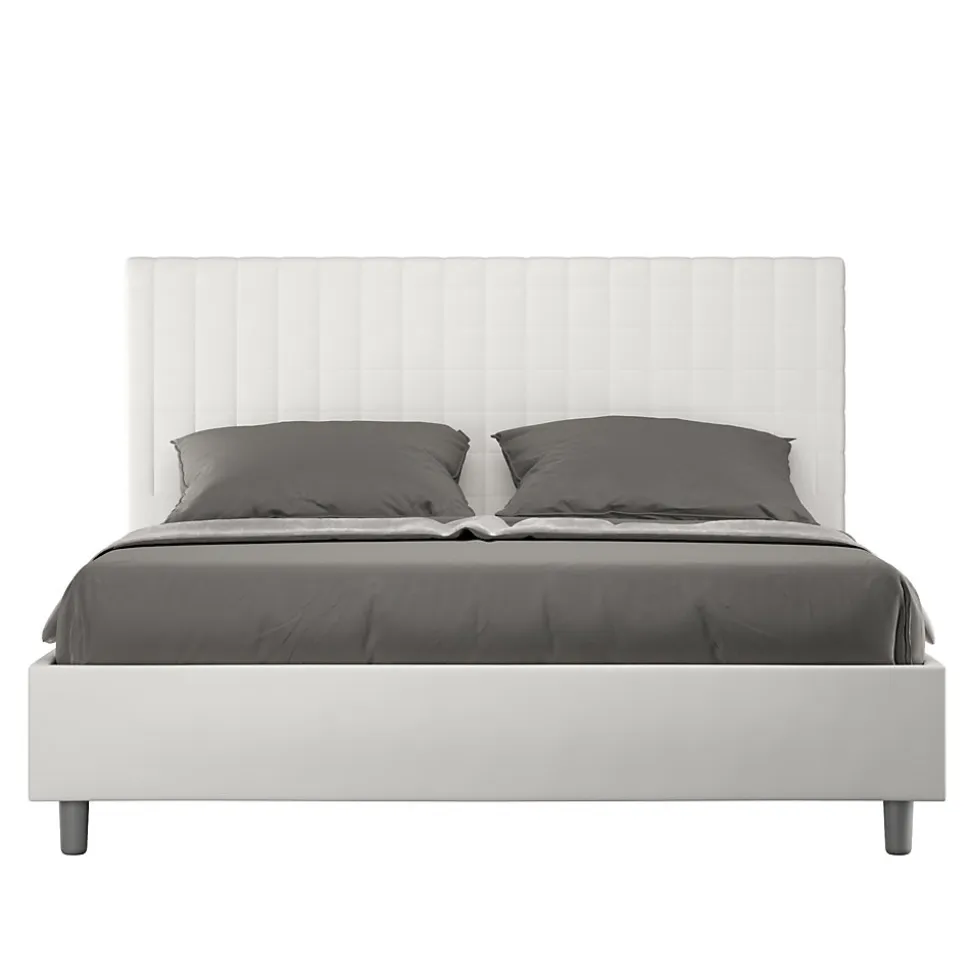 Lit double Sunny 160×200 avec tête de lit et lit rembourrés, revêtement en simili cuir, particulièrement polyvalent et facilement combinable avec n’importe quel style d’ameublement.Le lit double Sunny 160×200 se caractérise par un style moderne et élégant, mis en valeur par la tête de lit matelassée recouverte de simili cuir.La présence du matériau en simili cuir, en plus de donner à la pièce une atmosphère accueillante et invitante, offre la commodité d’un nettoyage rapide et facile, grâce à l’utilisation d’un simple chiffon en microfibre.Lit fourni avec sommier à lattes, prévu pour un matelas 160×200 cm – Matelas non inclusCouvre-lit non amovible.Produit ItyhomeFabriqué en ItalieDimensions lit : L.175 P.220 H.122 cmHauteur des pieds : 12 cmHauteur du lit : 27 cmHauteur du filet depuis le sol : 39 cm