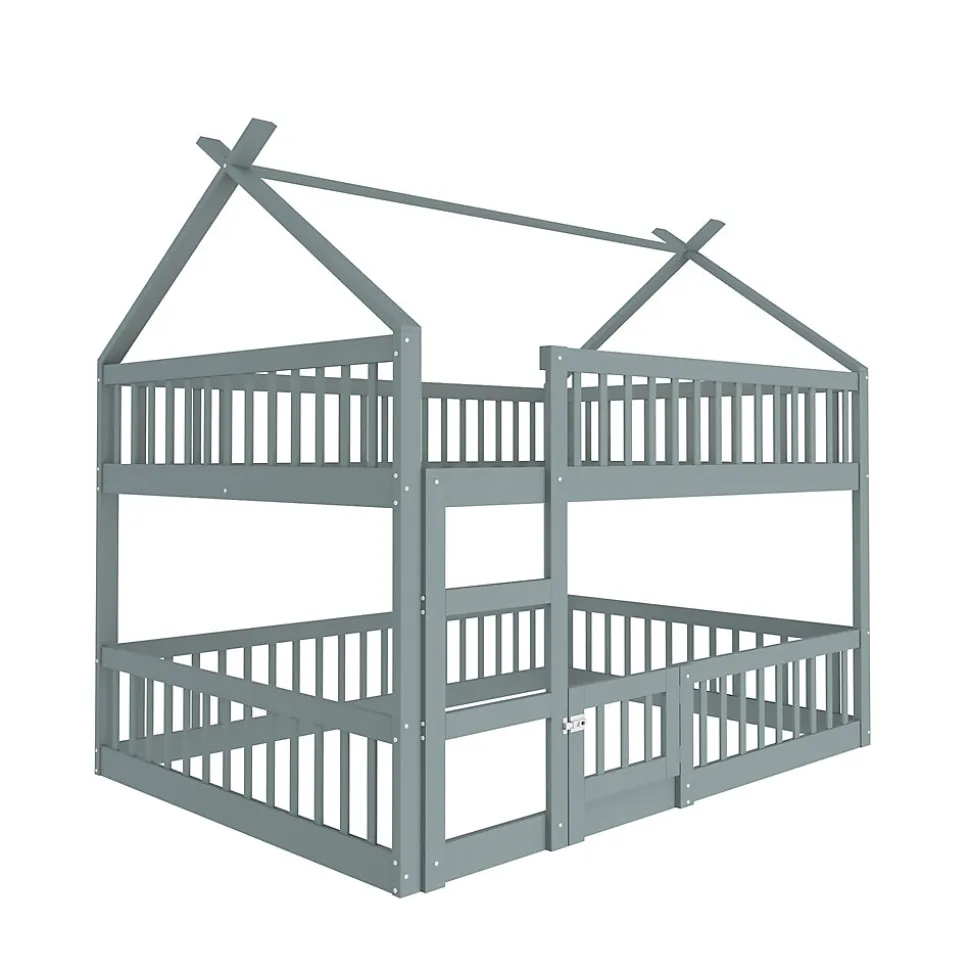 - Structure en bois massif renforcée par éléments métal, équipée de barrières hautes de sécurité et d’une porte ouvrante sur le couchage inférieur. Échelle intégrée pour un accès stable et pratique.