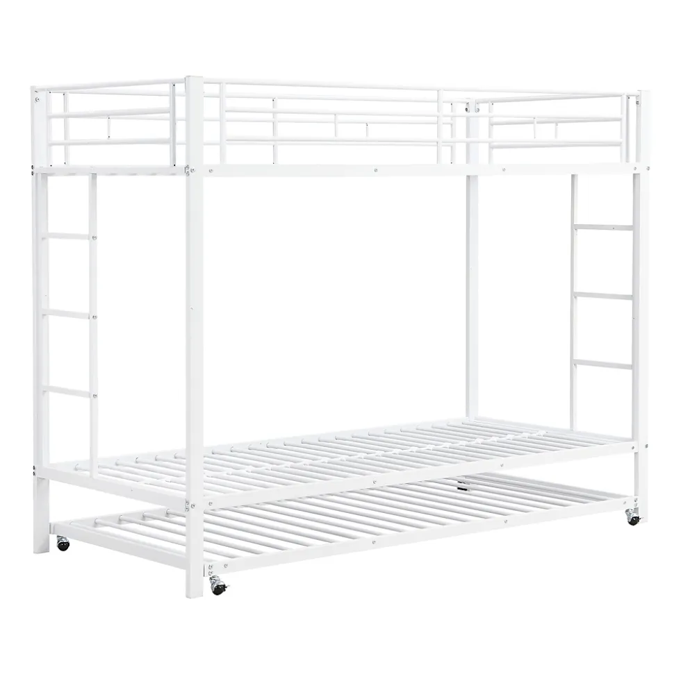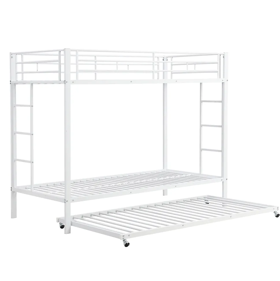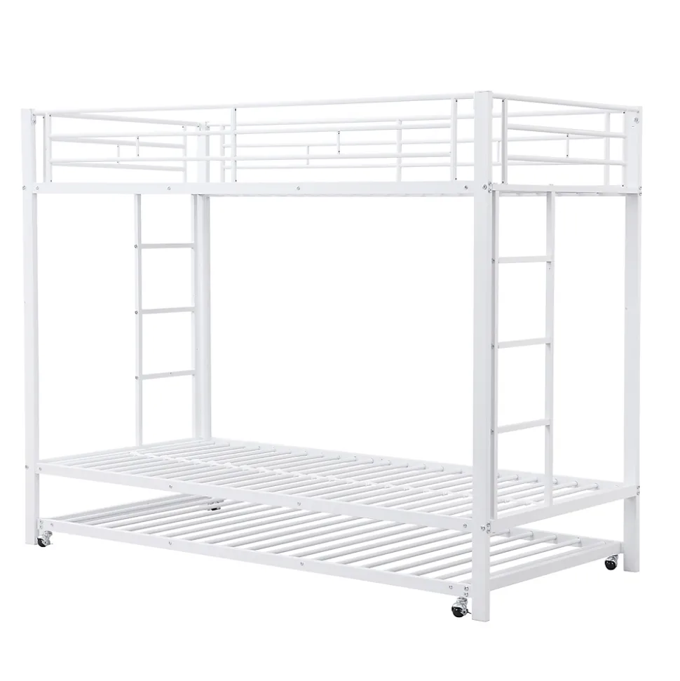 DescriptionLit superposé 90 x 200 cm pour enfant, cadre en métal noir, équipé d’un lit gigogne, certifié EN747. Ce lit combine robustesse, design moderne et fonctionnalités pratiques pour maximiser l’espace et offrir un environnement de sommeil sûr et confortable. Le lit supérieur dispose d’un garde-corps conforme aux normes EN747 pour la sécurité des enfants. Le lit gigogne intégré permet d’accueillir un couchage supplémentaire de manière flexible et pratique. Idéal pour les chambres modernes, ce lit apporte confort et style à la maison.Caractéristiques du produit :Robuste et durable : Cadre en métal solide, résistant à la déformation et aux usages quotidiens, supportant des poids plus lourds pour une longue durée de vie.Lit gigogne intégré : Offre un couchage supplémentaire, facilement adaptable selon vos besoins.Garde-corps haute sécurité : Conforme EN747, protège l’enfant et assure un sommeil sûr.Style moderne : Design minimaliste noir, élégant et fonctionnel, s’adapte à tout intérieur contemporain.Livraison pratique : Expédié depuis l’Allemagne en 2 colis, pouvant arriver séparément ; patience ou contact avec le service client recommandé.Descriptif et dimensions :Matériau : métalCouleur : noirDimensions totales : 204 x 95 x 160 cmLit supérieur : 90 x 200 cm, capacité 120 kgLit gigogne : 90 x 190 cm, capacité 80 kgHauteur totale : 160 cmNombre de sommiers à lattes : 24Épaisseur de matelas recommandée : 15-20 cm (Matelas non inclus)Nombre de colis : 2Assemblage requis : oui