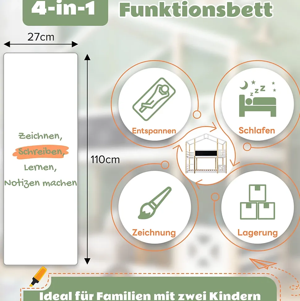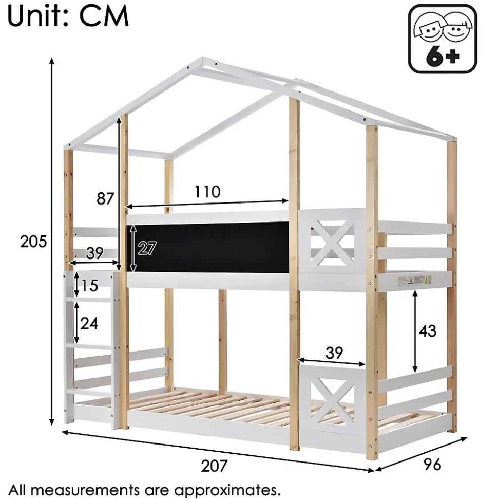 - 【Design en forme de maison dans l’arbre】 Ce lit superposé avec toit en forme de maison offre un espace plus vaste pour que vos enfants jouent ou étudient. La grande planche de 110*27 cm à l’avant permet à vos enfants de laisser libre cours à leur créativité et de personnaliser leur espace.