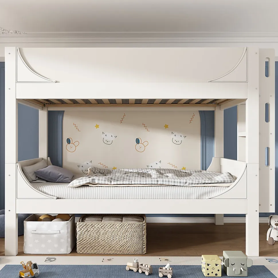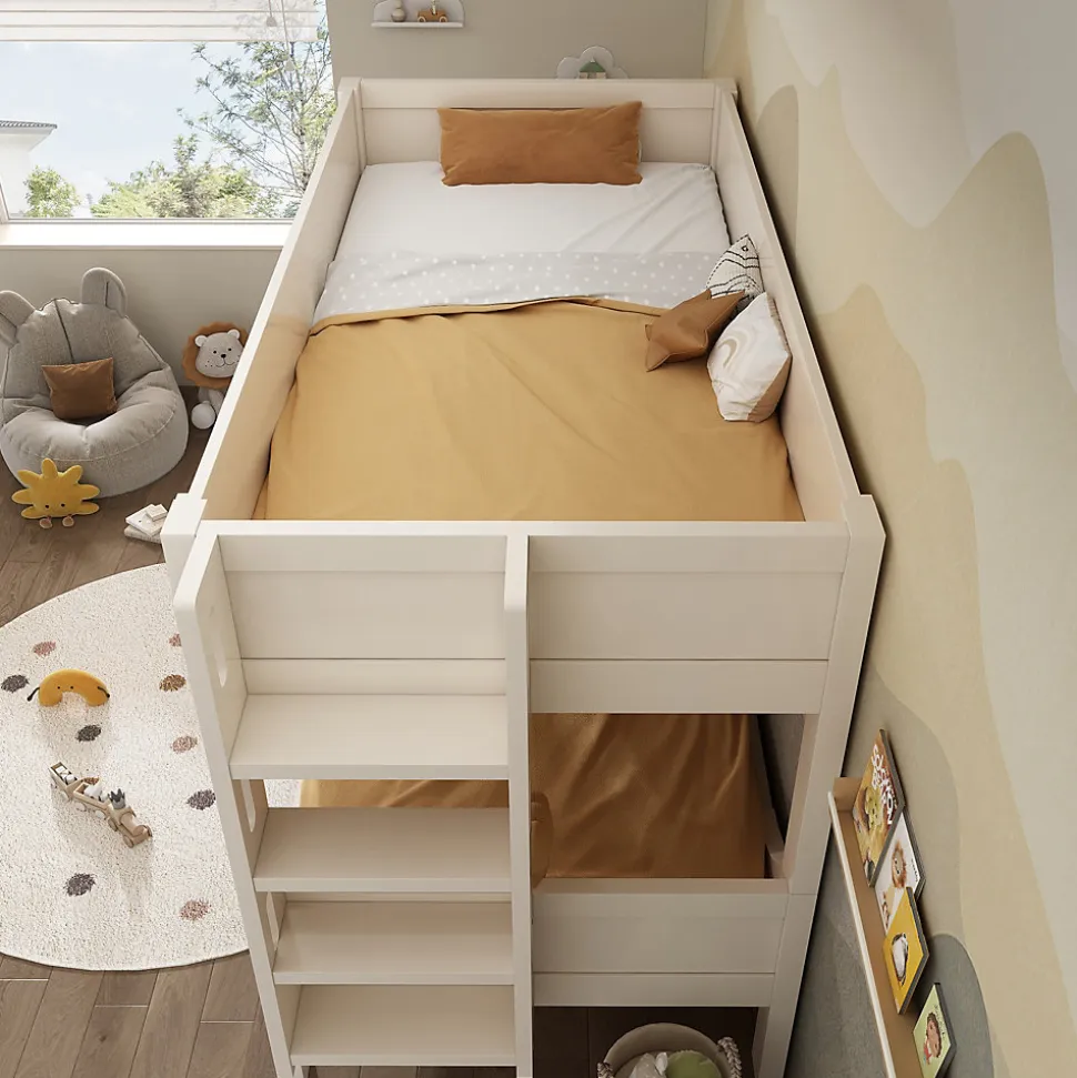 Design & styleCe lit superposé présente une silhouette « luge » peinte en blanc, apportant une atmosphère campagne et chaleureuse à la chambre d’un enfant ou d’un adolescent. Les lignes douces et la combinaison bois/métal offrent un rendu sobre et contemporain.Fonctionnalités & modularité Deux couchages 90×200 cm, idéaux pour frères et sœurs ou partage parent-enfant. Échelle modulable, à monter au pied ou à la tête selon l’agencement de la chambre. Possibilité de séparer le superposé en deux lits simples pour s’adapter à l’évolution des besoins.Matériaux & sécuritéStructure en bois massif et panneaux MDF avec éléments métalliques pour une stabilité renforcée. Conçu pour un usage quotidien, charge recommandée 150 kg par couchage. Conforme à la norme européenne EN 747-1:2024 pour la sécurité et la durabilité.Dimensions & compatibilitéDimensions totales 214 x 95 x 150 cm (LxPxH). Convient pour matelas 90×200 cm (épaisseur recommandée 10 cm, max 12 cm). Largeur d’entrée 36 cm, recommandé pour enfants à partir de 6 ans.Installation & livraisonMontage requis, deux personnes conseillées. Produit livré en 2 colis avec pièces numérotées et notice de montage. Poids brut 58 kg, poids net 53,4 kg. Matelas non inclus. Entretien simple : essuyer avec un chiffon doux pour préserver les finitions.