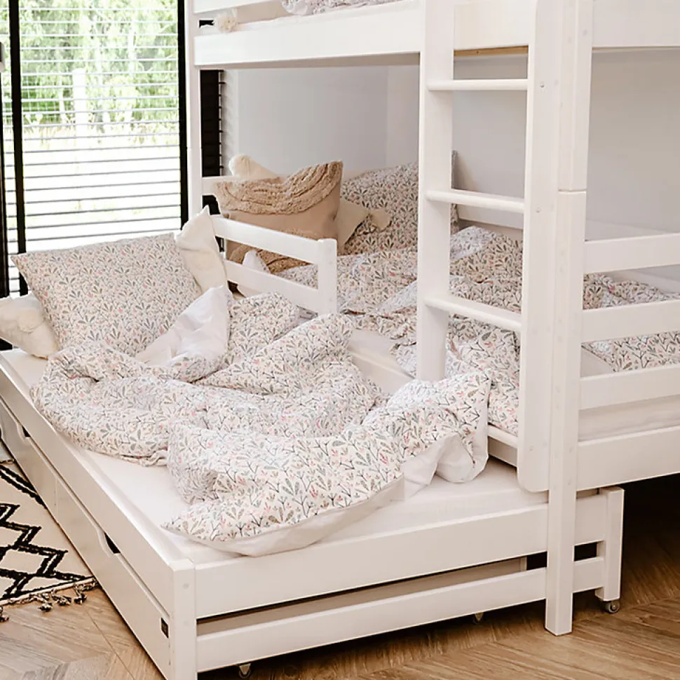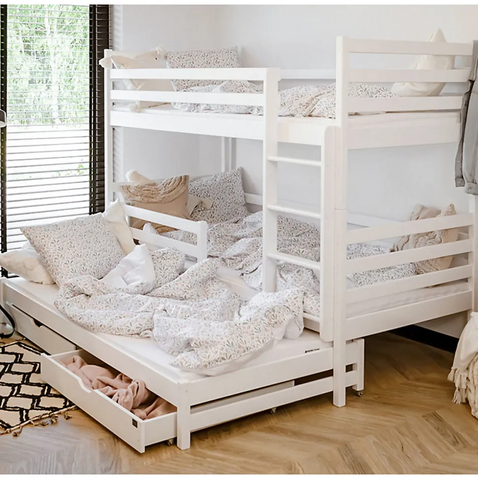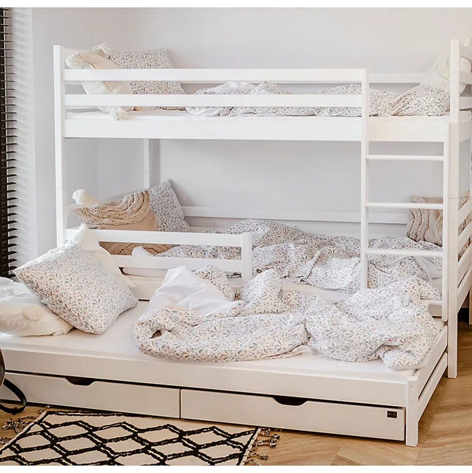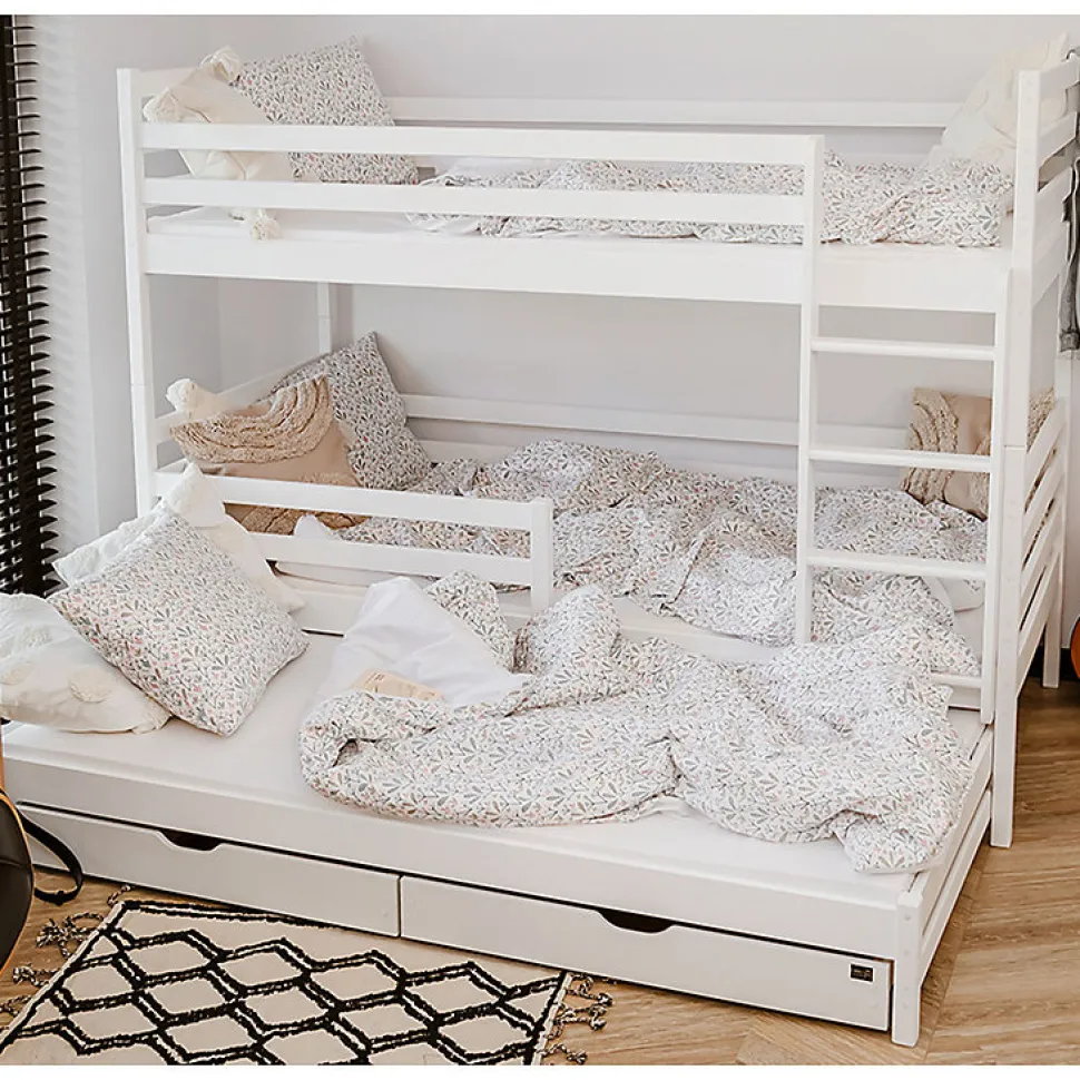 Lit superposé 90×200 sommier lit gigogne et tiroirs inclus Léo Blanc