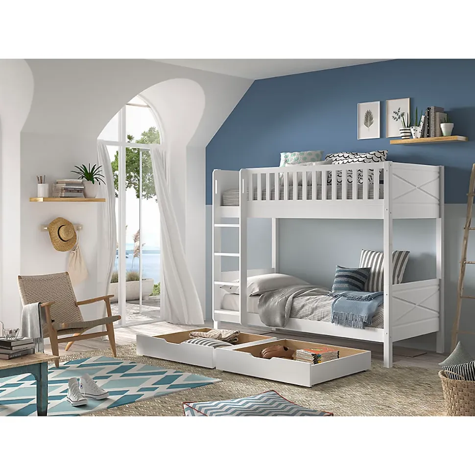 Lit superposé 90×200 2 tiroirs inclus Vipack Scott Blanc