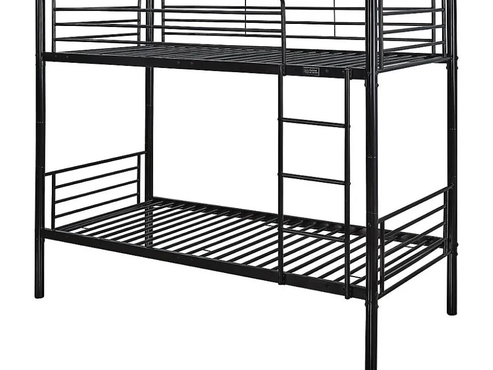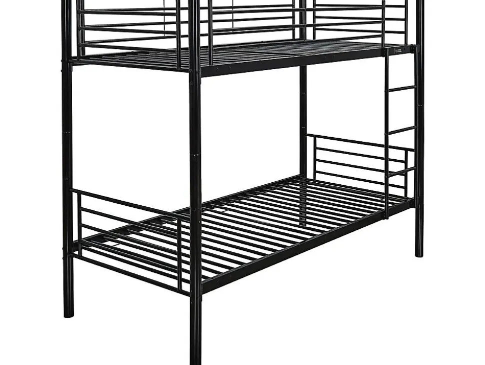 Le lit superposé Adam – 2×1 place – est entièrement conçu en métal afin de vous proposer un produit de plus en plus tendance. De plus, une telle structure confère solidité, robustesse, fiabilité… ce que vous apprécierez assurément ! Dès lors, il devient idéal voire indispensable à toute chambre, offrant 2 espaces de couchage ainsi que la possibilité d’optimiser réellement l’espace occupé dans la pièce. Ainsi, il se pose comme un lit recherché et apprécié, notamment pour partager une chambre à coucher entre plusieurs personnes tout en souhaitant économiser de l’espace. Lit superposé « Adam » en acier – 2 x 1 place – Noir – Dimensions : 200 x 97,5 x 165 cm – Echelle fournie .Matières: acierDescriptif: Barrière de sécurité pour le lit du haut Taille recommandée de matelas : 90 x 190 cmFinition: noir brillantcouleur (filtre): Noirpieds: AcierDimensions du couchage: 90×190 cmMatière(Filtre): MetalTiroirs: En optionTiroir sous lit: En optionCouleurs: noirLattes: 48 Lattes en métal inclues – Distance entre chaque latte : 7 cmÉchelles: Échelle en métal 3 marches incluesDimensions: 200 x 97 x 165 cmLongueur: 200 cmLargeur: 97,5 cmHauteur de couchage: 37 cmHauteur de couchage: 126,5 cmBarrière de sécurité côté échelle: InclusBarrière de sécurité côté mur: InclusDimension entre les deux lit: 89,5 cmPoids: Maximum supporté : 80 kg (lit du haut) – 150 kg (lit du bas)Distance entre chaque marche: 19/23/23/19 cmDimensions tube: 16 mmColisage: 1 colis : – 1,96 x 0,44 x 0,154 m, 39,95 kg