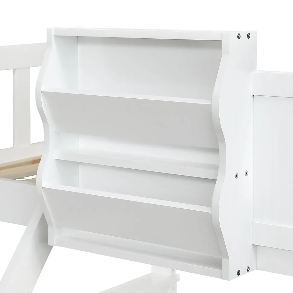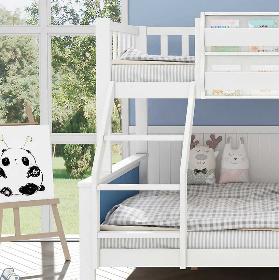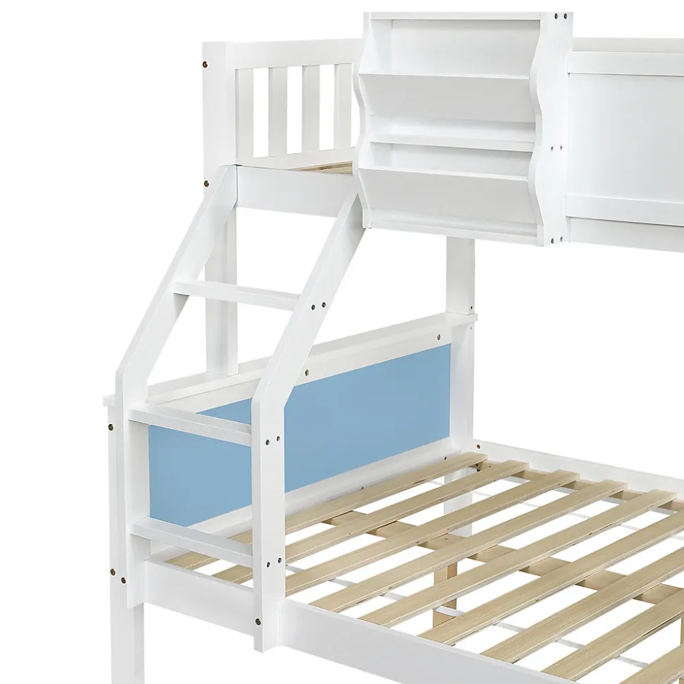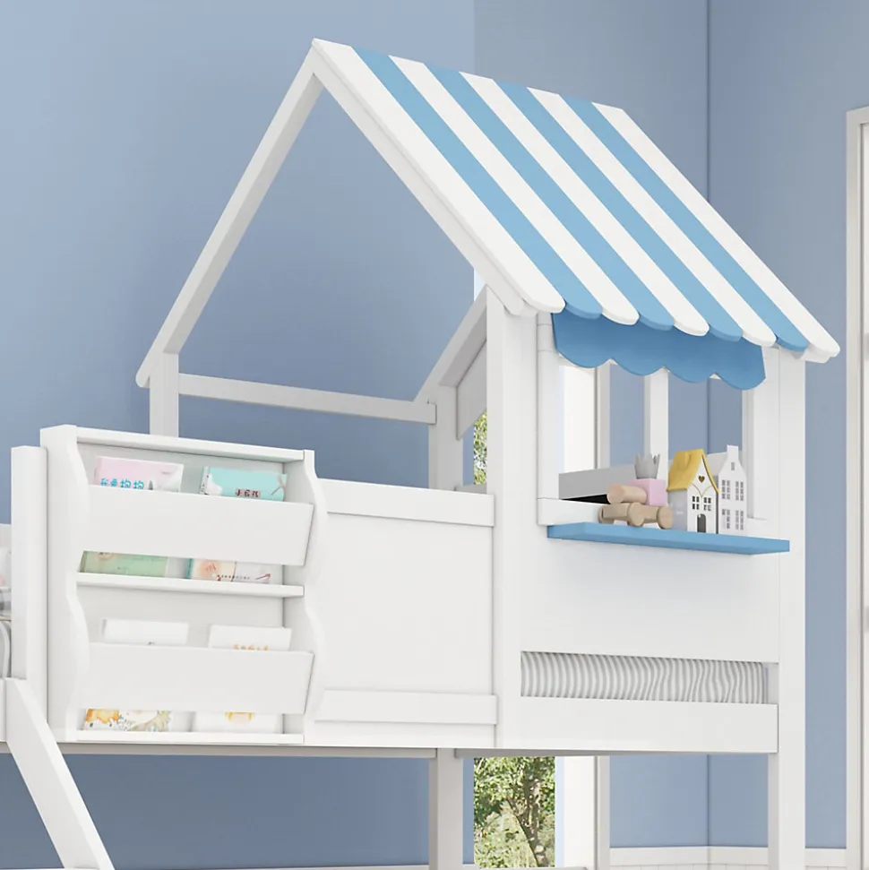 Ce lit superposé double couchage est une solution élégante et pratique pour les chambres d’enfants. Avec sa combinaison blanc et bleu et ses fenêtres originales, il crée un espace ludique et sécurisé.L’escalier incliné à trois marches assure une montée facile, tandis qu’un grand tiroir de rangement optimise l’espace. Le tableau noir sur le côté ajoute une touche interactive idéale pour dessiner ou écrire.Points forts :Toit et fenêtres décorativesBarrières de sécurité sur 4 côtésEscalier incliné à trois marchesTableau noir latéralDeux couchages pour un espace partagéStyle adaptable à tout décorDimensions & poids :Dimensions totales : 205x125x206 cmPoids total : 63,5 kgMatelas recommandés : 90×200 cm & 120×200 cm (épaisseur ≤13 cm)Charge maximale : lit 120 kg / tiroir 5 kgCaractéristiques :Matériaux : Pin + MDF + contreplaquéLattes : boisCouleur : Blanc + BleuÀ monter soi-mêmeNombre de colis : 3