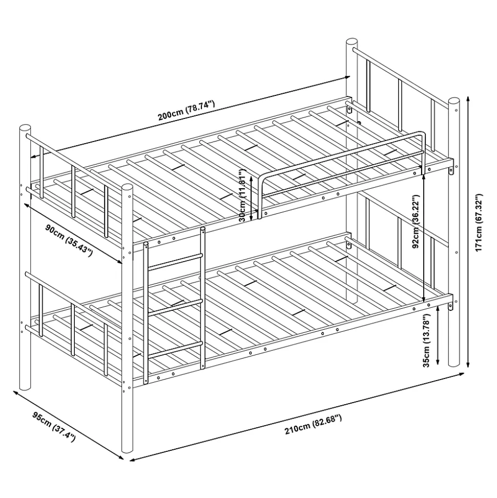 - Sécurité renforcée : l’échelle intégrée permet un accès simple et sûr à la couchette supérieure, complétée par une barrière de protection de 30 cm pour prévenir les chutes.