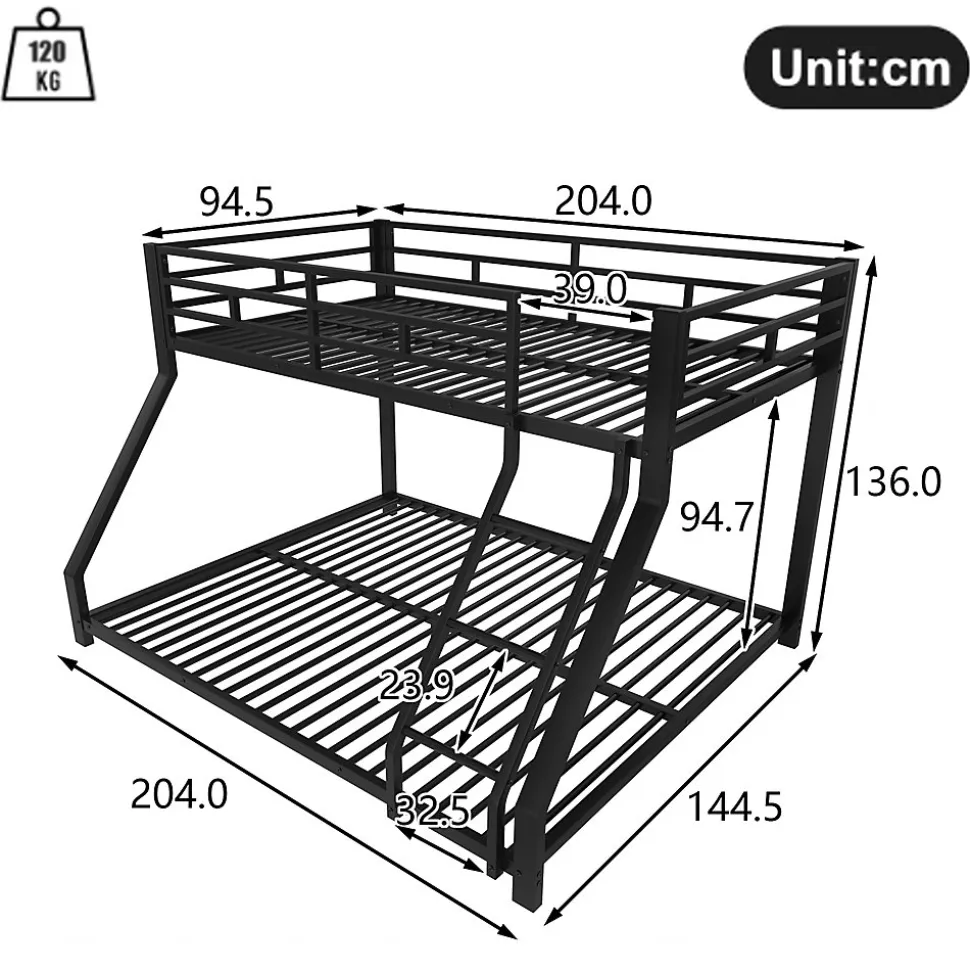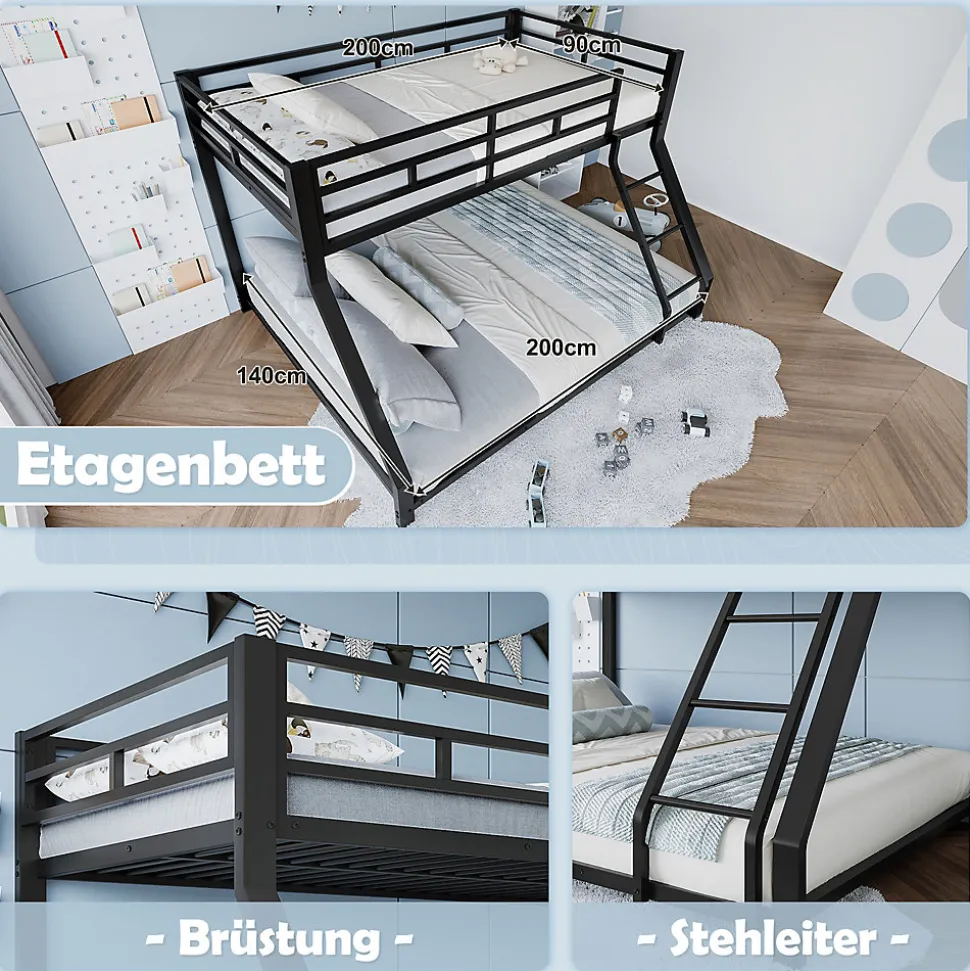 ▶ ▶ Détails ▶────────────────● Nom du produit : Lit superposé● Couleur : Noir● Matériau du lit : Métal● Dimensions du produit : 204 × 144,5 × 136 cm● Dimensions intérieures du lit : 90 × 200 cm / 140 × 200 cm● Capacité de charge : 120 kg● Épaisseur recommandée du matelas : 10 cm● Épaisseur recommandée du matelas pour le lit inférieur : 10-15 cm● Nombre de colis : 2● Assemblage requis : Oui► Remarques ►※ Ce produit est livré en 2 colis qui peuvent ne pas arriver simultanément. Veuillez faire preuve de patience.※ En raison de mesures manuelles, une différence de 2 à 3 cm peut se produire.※ Toutes les images du produit ont été prises avec le produit réel, mais de légères variations de couleur peuvent survenir en raison de l’exposition au soleil ou d’autres facteurs.※ Si vous avez des questions lors de l’installation, veuillez nous contacter dès que possible.