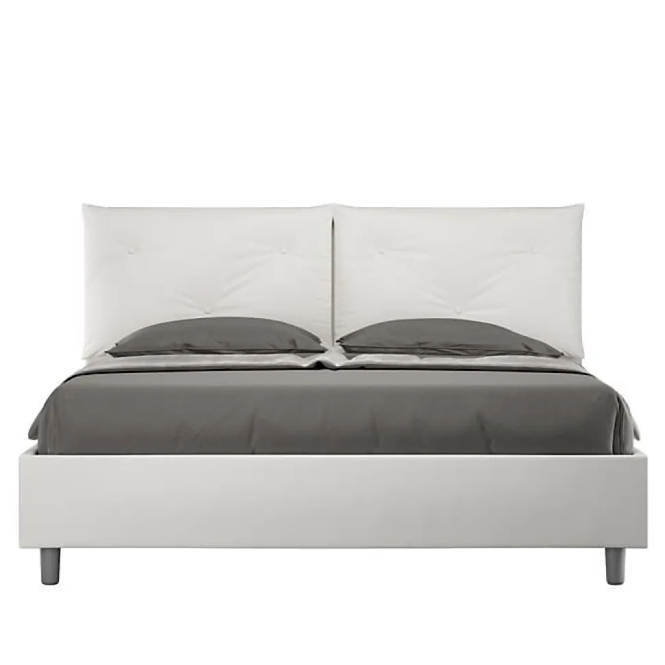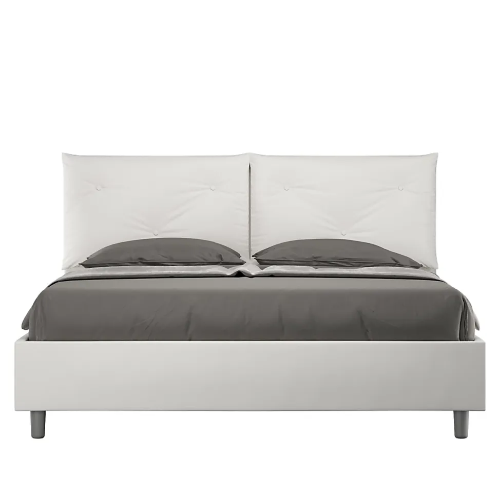 Lit double Appia 160×190 avec tête de lit et lit rembourrés, revêtement en simili cuir, particulièrement polyvalent et facilement combinable avec n’importe quel style d’ameublement.Le lit double Appia 160×190 se caractérise par un style élégant et raffiné grâce aux larges coussins de la tête de lit, il est entièrement recouvert de simili cuir.La présence du matériau en simili cuir, en plus de donner à la pièce une atmosphère accueillante et invitante, offre la commodité d’un nettoyage rapide et facile, grâce à l’utilisation d’un simple chiffon en microfibre.Lit fourni sans sommier, prévu pour sommier 160×190 h.4 cm et matelas 160×190 cm – Matelas non inclusCouvre-lit non amovible.Produit ItyhomeFabriqué en ItalieDimensions lit : L.175 P.202 H.110 cmHauteur des pieds : 12 cmHauteur du lit : 27 cmHauteur du lit depuis le sol : 39 cm