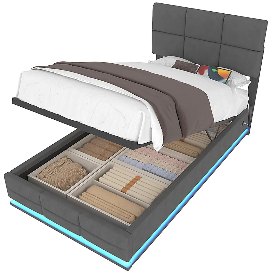 - Ports USB pratiques sur le côté du cadre de lit : rechargez facilement votre smartphone ou votre tablette sans avoir à quitter votre lit. Idéal pour les utilisateurs modernes.