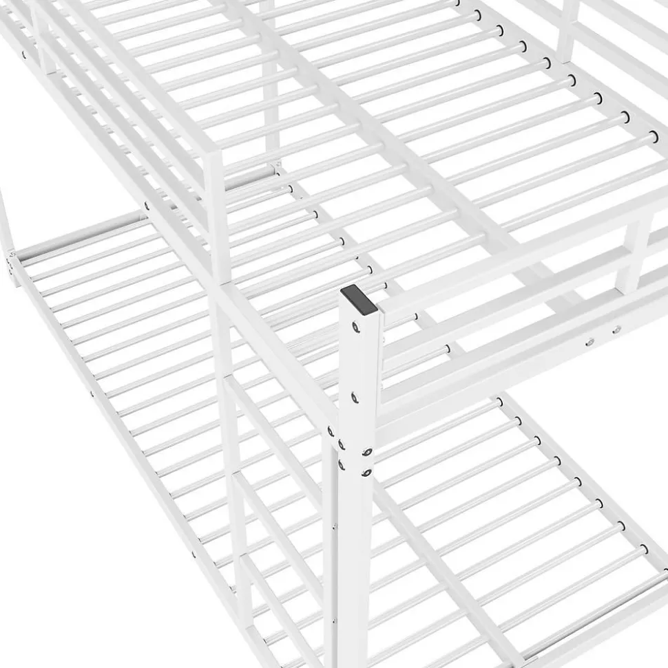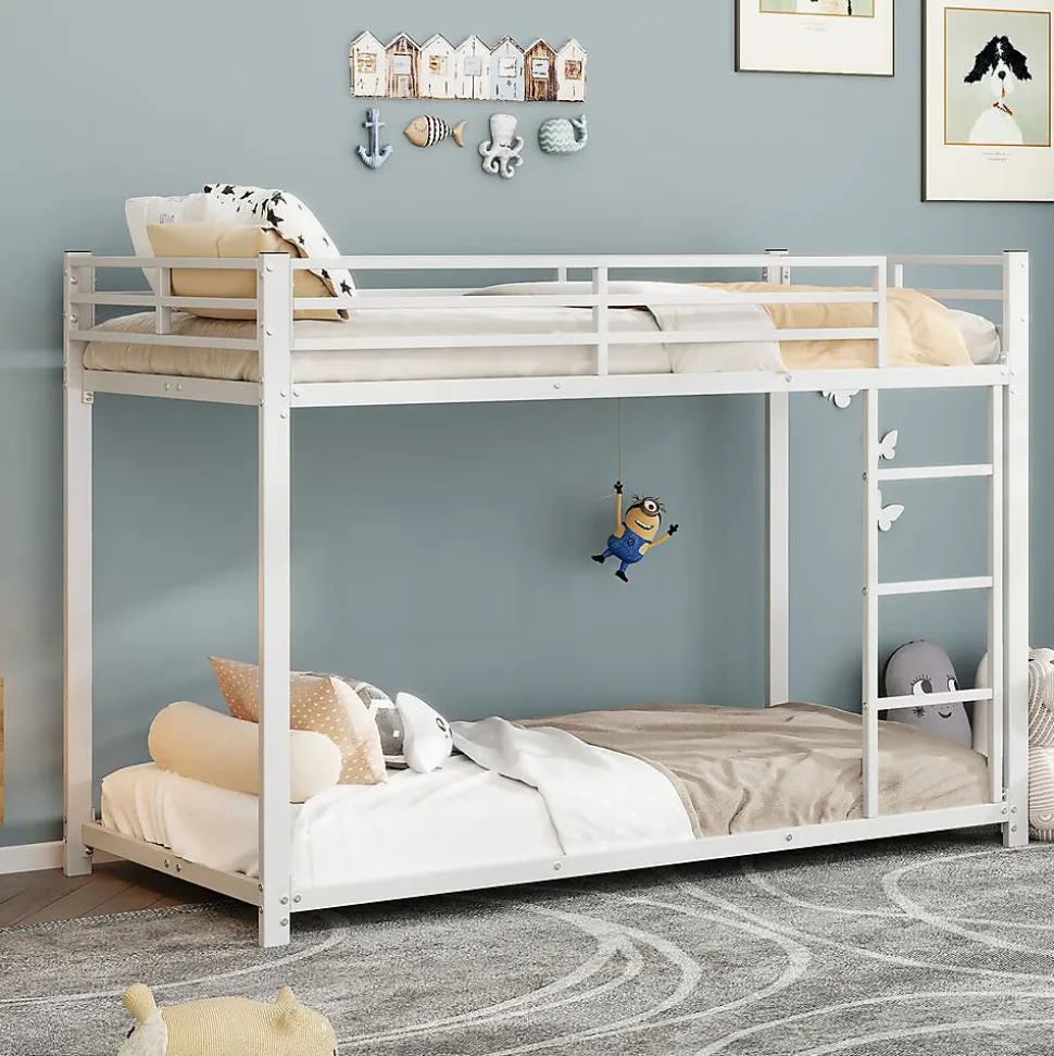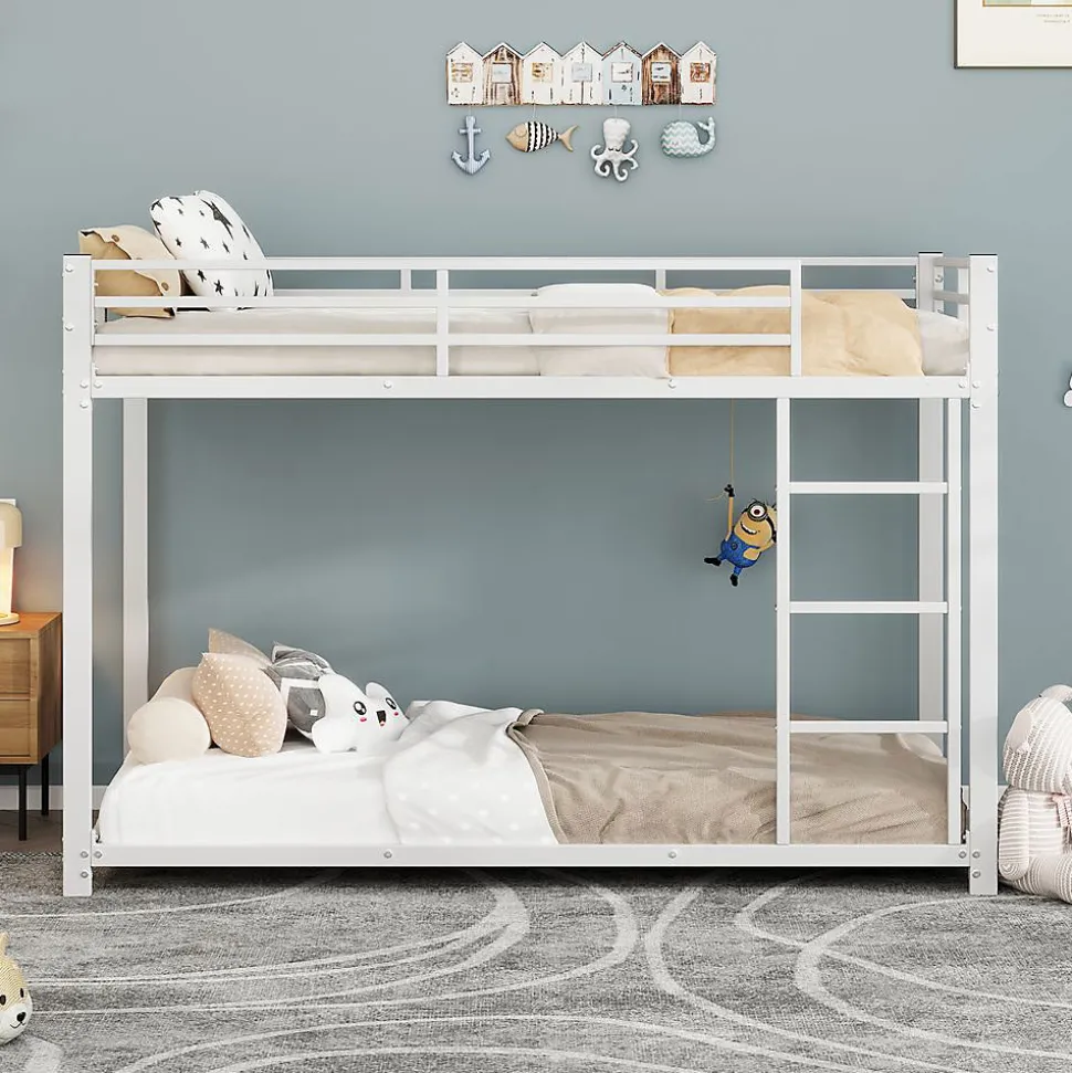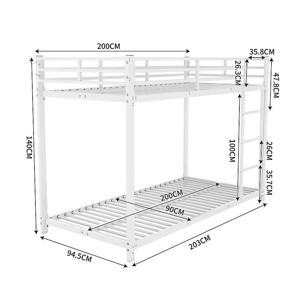 Lits superposés métalliques 90×200 cm – BlancDimensions: 203(L) x 94.5(P) x 140(H) cm Capacité:Lit supérieur: 120 kg (barrière 26 cm)Lit inférieur: 120 kg Matériau: Métal robusteCaractéristiques: ✔ 23 lattes métalliques par lit ✔ Sécurité optimale avec barrières ✔ Montage facile avec notice claire ✔ Gain de place idéal pour petites chambresLivraison: 2 colis:198x35x11 cm (25.5 kg)101x25x14 cm (17.4 kg)Compatibilité:Matelas supérieur: 10 cm maxMatelas inférieur: 15-20 cmOrigine: Allemagne
