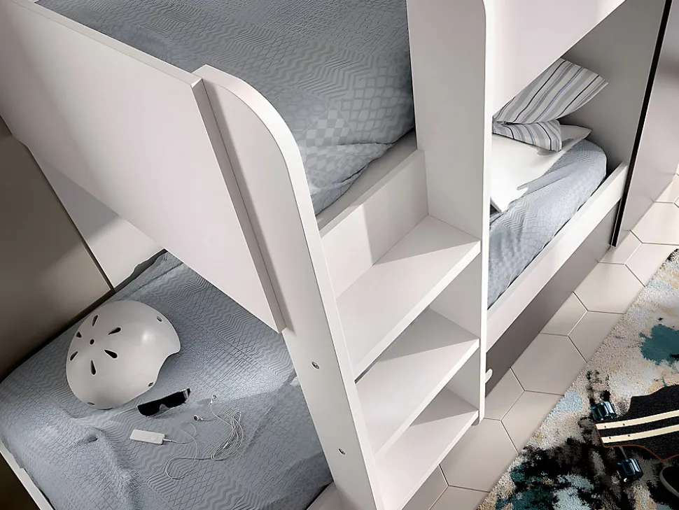 Le lit ANTHONY « tout en un » est idéal pour libérer de la place dans la chambre de vos enfants. Il pourront ranger leurs affaires dans l’armoire, ainsi qu’inviter leurs amis à dormir à la maison avec le lit tiroir gigogne. La structure bicolore apportera du pep’s et du raffinement à la chambre de vos enfants, filles ou garçons !1 x Lit superposé ANTHONYCaractéristiques Couleur (nuance) : Blanc, Gris anthracite Matière (précision) : Panneau de particule Finition : Mélaminé Taille (couchage) : 90 x 190 cm Nombre de places : 2 places Réversible Avec sommier Type de sommier : Sommier plein en panneau Type de rangement : Placard, Penderie Nombre de placards : 1 Gamme : Good for Planet, Création Exclusive Produit : Fabriqué en Europe Charge maximale supportée : 75 kg À monter soi-même : Armoire intégrée (1 barre de penderie et 1 étagère) : 1 tiroir lit gigogne 90 x 190 cm sur 8 roulettes : Le lit peut être monté vers la gauche ou vers la droite : Attention le lit haut ne convient pas aux enfants de moins de 6 ans : Le lit est compatible avec tous les matelas 90 x 190 cmDimensions Longueur : 243 cm Hauteur : 150 cm Profondeur : 97 cm Hauteur entre les lits : 88 cm Hauteur de la barrière de sécurité : 16 cm Hauteur sous le couchage du haut : 115 cm Hauteur sous le couchage du bas : 24 cm Hauteur entre les 2 couchages : 88 cm Dimensions de l’armoire : L50 x P97 x H110 cm Hauteur maximale des matelas : 19 cm Hauteur maximale du matelas gigogne : 15 cm2 x Matelas classique ZEUSCaractéristiques Technologie (âme) : Mousse Soutien : Ferme Densité (âme) : 25 kg/m³ Technologie matelas (accueil) : Mousse de confort Densité (accueil) : 20 kg/m³ Accueil : Tonique Garnissage du matelas : Ouate hypoallergénique Densité (garnissage) : 400 g/m2 Coutil (matière) : Polyester Couleur (nuance) : Blanc Matière (précision) : 45 % Polyester Composition % tissu Polypropylène : 55 % Taille (couchage) : 90 x 190 cm Nombre de places : 1 place Traitement : Anti-acariens,