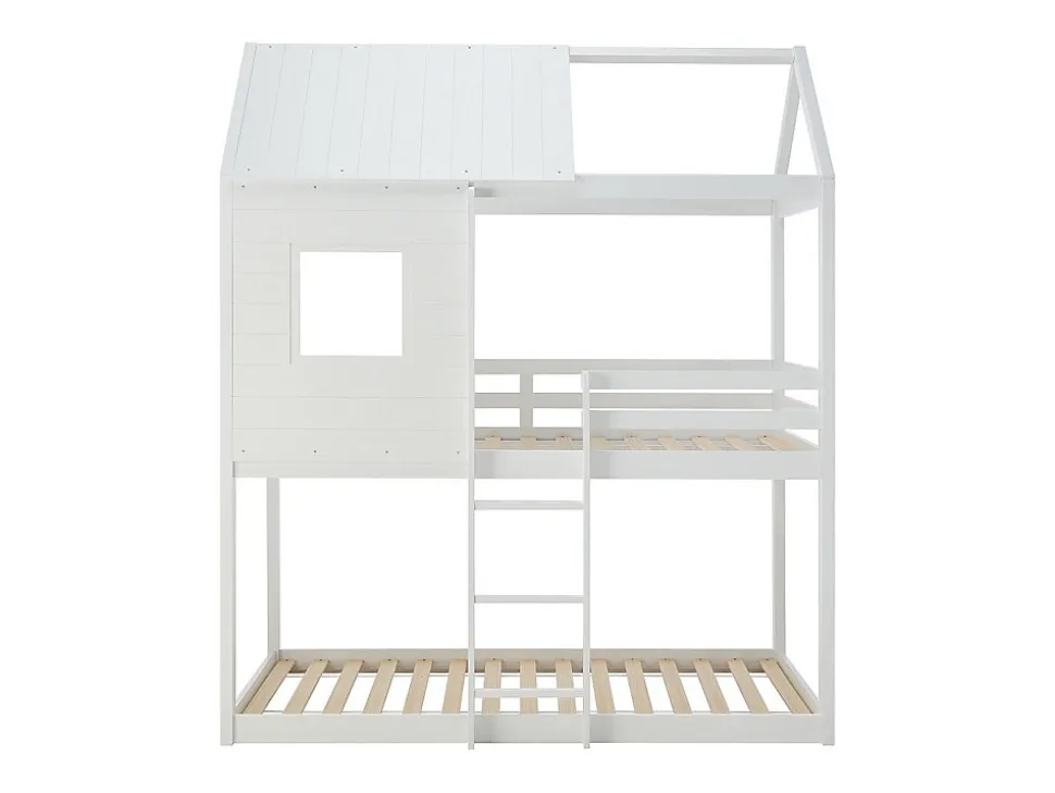 - Lits superposés cabane 2 x 90 x 190 cm – Structure : Pin et MDF – Coloris : Blanc – Dimensions : L196,5 x P97 x H231 cm + Matelas – LIDOVARA le lit qui transforme chaque nuit en aventure unique !