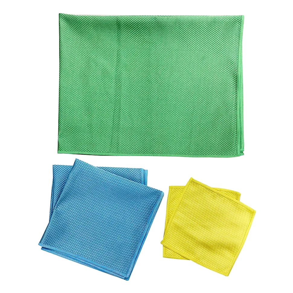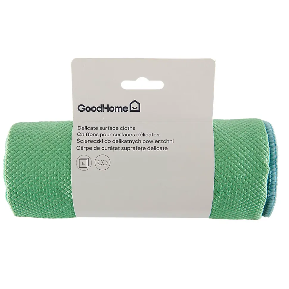 Lot 5 chiffons de nettoyage écaille de poisson GoodHome jaune, vert et bleu L.16 x l.16cm