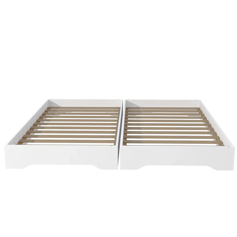 Lot de 2 lits empilables BINGO 90×190 + 2 sommiers / BlancDeux lits de multiples possibilités ! Assemblés l’un sur l’autre ils forment un lit simple, ou une banquette. Installés côte à côte, vous disposez d’un grand lit deux personnes ou un lit d’appoint!Les PLUS produit: – Lits empilables pour un gain de place optimal !- Avec 2 sommiers inclus- Fonctionnel et pratique pour les petites piècesCaractéristiques: – Couleur : Blanc- Structure en panneaux de particules- 2 sommiers 90×190 de 12 lattes chacun- Hauteur maximale matelas conseillée : 19 cm.- Dimensions hors tout L x P x H : 194.2 x 93.6 x 20.5 cm (1 lit) – 194.2 x 93.6 x 41 cm (2 lits)- Longueur hors tout : 194.2 cm- Longueur couchage : 190 cm- Largeur hors tout : 93.6 cm- Largeur couchage : 90 cm- Hauteur hors tout : 41 cm- Hauteur lit individuel : 20.5 cm- Capacité de charge maximale : 80 kgsLivré démonté, avec 2 sommiers à lattes, sans matelas. A monter soi-mêmeDimensions:194.2×93.6×41