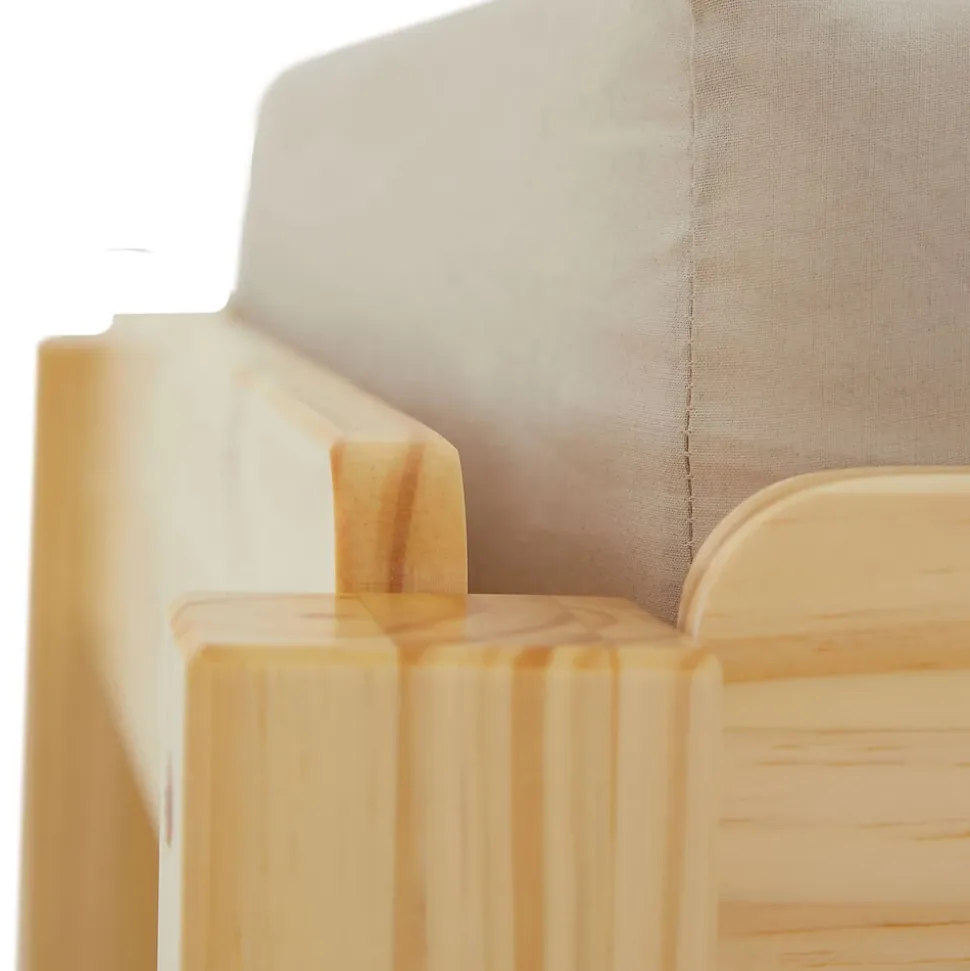 - Les lits superposables RINO sont fabriqués en pin massif et recouverts par un vernis coloris naturel. La madrure du bois reste visible.