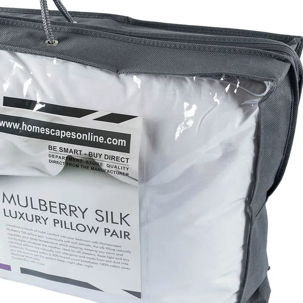 Pour des nuits d’une douceur extrême, laissez-vous séduire par ces 2 oreillers en soie rectangulaire aux propriétés thermorégulatrices et hypoallergéniques.Oreillers en soie naturelleMatière noble par excellence, la soie permet à ces oreillers d’être à la fois respirants, thermorégulateurs et donc aussi anti-transpirants. Très résistants grâce à la longue durée de vie de la soie, ces oreillers offrent un maintien tout en douceur. De plus la soie se répartit plus uniformément pour un confort et un moelleux supplémentaire.Oreillers rectangulaires hypoallergéniquesLa soie est aussi naturellement saine. Hypoallergénique, ces oreillers sont idéals pour les personnes souffrant d’allergies et d’asthme et fera le bonheur des peaux les plus sensibles. La soie est une fibre inhospitalière pour les acariens et est donc naturellement antibactérienne, sans traitement chimique.Le mélange utilisé pour ces oreillers a été conçu spécialement pour Homescapes, et est donc unique.