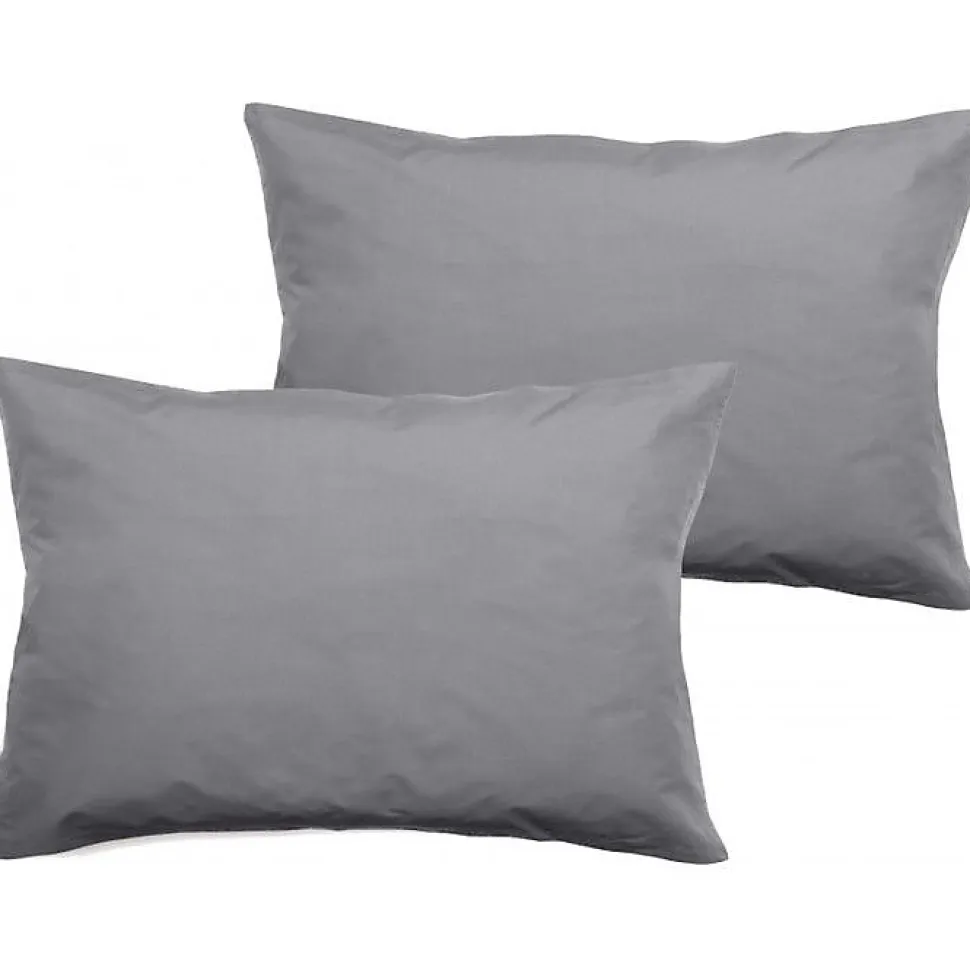 Lot de 2 taies d'oreiller percale pur coton peigné longues fibres 80 fils/cm² Vent du sud - Acier - Lot de 2 taies d'oreiller 50 x