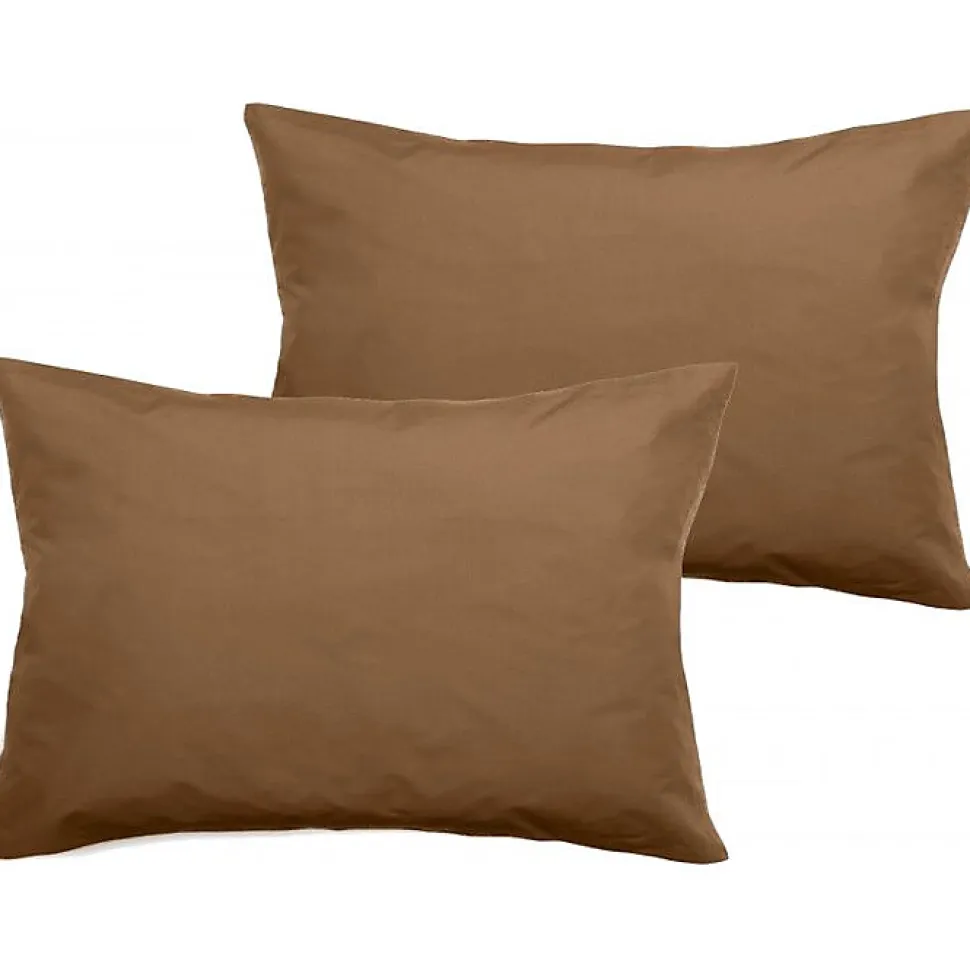 Lot de 2 taies d'oreiller percale pur coton peigné longues fibres 80 fils/cm² Vent du sud - Cognac - Lot de 2 taies d'oreiller 50