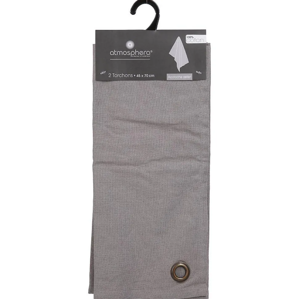 Lot de 2 torchons imprimés – coton – gris clair – 45×70 cm – Atmosphera