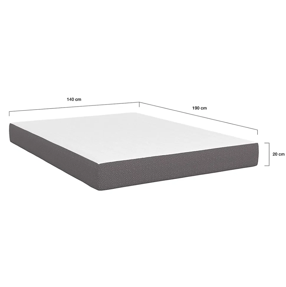 Optez pour le matelas mousse à mémoire de forme STELLA 140×190 cm et assurez vous des nuits paisibles et reposantes au quotidien.Notre matelas est composé d’une mousse à mémoire de forme haute densité pour vous offrir un soutien optimal tout au long de la nuit ! Il s’adaptera parfaitement à la forme et aux mouvements de votre corps durant votre sommeil.Avec ses 20 cm d’épaisseur, le matelas STELLA vous offre une fermeté modérée et un soutien solide nuits après nuits.Bénéficiez d’un sommeil paisible et réparateur grâce à son indépendance de couchage de qualité.Grâce à sa housse en polyester 180 gr/m² douce au toucher, votre matelas pourra ainsi évacuer la chaleur, absorber l’humidité et respirer pour un climat de sommeil optimal !Livré roulé compressé dans un emballage sous vide, la taille idéale du colis vous permettra de le réceptionner facilement. Une fois déballé, laissez reposer le matelas jusqu’à ce qu’il retrouve sa forme d’origine. Vous pourrez ensuite profiter pleinement de son accueil moelleux pour des nuits douces au quotidien.Dimensions du matelas STELLA 140×190 cm épaisseur 20 cmDimensions globales : Longueur 190 cm x largeur 140 cm x Hauteur 20 cmMatériaux : Mousse polyuréthane à mémoire de forme 38 kg/m3 et 24 kg/m3Housse en polyester 180 g/m² et 120 g/m²Coloris : Blanc et grisMousse haute densitéLivré roulé compresséLe matelas reprend sa forme initiale entre 48 et 72 hRetrouvez l’ensemble de nos matelas sur notre boutique en ligne !