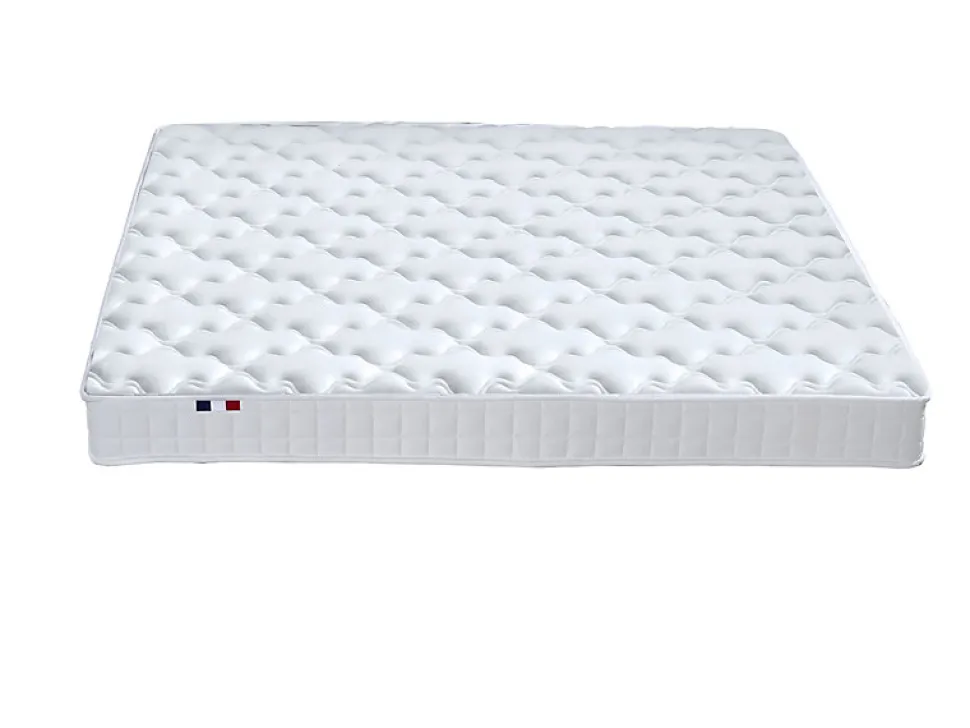 Matelas bi-confort mousse et mémoire de forme Azur Le matelas bi-confort Azur est conçu pour s’adapter à toutes les saisons et offrir un sommeil réparateur. Grâce à une combinaison de mousse haute densité et de mémoire de forme, il procure un équilibre parfait entre soutien ferme et accueil moelleux. Un confort pensé pour l’hiver Un accueil douillet et chaleureux Le plateau hiver est composé d’un coutil stretch doux et résistant, d’une ouate polyester 200 g/m ? et de deux couches de mémoire de forme d’1 cm chacune. Ce matelas épouse la morphologie du corps pour un maintien optimal tout en conservant la chaleur pour un confort maximal. Une fraîcheur idéale pour l’été Une aération optimale Lorsque les températures montent, le plateau été assure une circulation d’air optimale. Il est composé du même coutil stretch respirant, d’une couche de ouate polyester et d’une mousse légère de 4,5 mm garantissant une sensation de fraîcheur tout au long de la nuit. Une âme robuste pour un maintien parfait Au c?ur du matelas, une plaque de mousse 24FF de 12 cm assure un soutien ferme et une grande longévité. Cette structure garantit une parfaite indépendance de couchage et une résistance aux déformations dans le temps. Des finitions soignées L’esthétique du matelas Azur est sublimée par une plate-bande en tissu gris clair et un galon blanc, assurant une finition élégante et moderne. Le matelas bi-confort Azur est conçu pour répondre aux exigences les plus élevées en matière de confort et de durabilité. Il vous accompagne saison après saison pour des nuits toujours plus agréables.