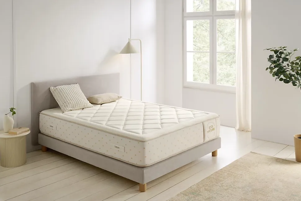 ECO NATURE SPRING, parce que bien dormir, ce n’est pas un luxe, mais une nécessité.En nouveauté, le matelas Eco Nature Spring ingère désormais des matériaux naturels tels que le coton. L’association du coton naturel et la structure de confort de ses couches vous conduira à un repos parfait.Le matelas Eco Nature Spring se présence comme une décision consciente et équilibrée qui n’offre pas seulement le repos, mais une expérience de bien-être naturel pensée dans les moindres détails.Au cœur de l’Eco Nature Spring se trouve une armature de ressorts ensachés à haute densité, avec 220 ressorts par mètre carré qui travaillent de manière indépendante, en s’adaptant au corps et en aidant à maintenir un alignement adapté pour la colonne vertébrale. Ce système favorise une répartition du poids homogène, minimise les points de pression et assure l’indépendance des couchages, ce qui en fait une excellente option pour dormir à deux. Il offre un accueil moelleux, grâce à un garnissage en mousse viscoélastique qui procure un toucher doux et une forte sensation de confort.Le matelas comporte quatre poignées brodées qui facilitent sa manipulation et permettent de le tourner facilement.Eco Nature Spring n’est pas seulement un matelas. C’est un compromis entre le sommeil, un confort durable et le choix de matériaux qui respectent ton corps.Détails techniques:Épaisseur: +/- 30 cmMousse Viscoélastique + Mousse Viscosoft: 5 cm220 Ressorts Ensachés indépendants /m2Système Pression Care: 12 Zones de ConfortIndéformable, anatomique et ergonomiqueTraitement SanitizedSystème anti-humidité FlowSpring: ThermorégulableLongue résistance dans le temps de 10 ansSystème de qualitéCertifications et garantiesCertificat OEKO-TEXCertification européenne100% de satisfaction garantieGaranti 3 ansFabriqué en Espagne