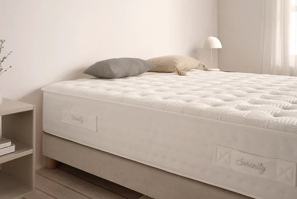 1. Repos ferme, adaptable et innovant Le Matelas Serenity combine ressorts ensachés, mousse à mémoire de forme, Hypersoft et mousse haute densité pour offrir un sommeil réparateur et de haute qualité. Avec une épaisseur de 30 cm, il assure un équilibre parfait entre fermeté, confort et respirabilité, tout en soutenant l’alignement naturel de la colonne. La mousse Hypersoft, issue d’une technologie avancée, se distingue par sa résilience, sa ventilation optimale et son confort enveloppant mais ferme, garantissant fraîcheur, ergonomie et durabilité. 2. Ergonomie et raffinement italien La mousse à mémoire de forme procure un accueil progressif et ergonomique, soulageant les points de pression dès le premier contact. Son cœur à ressorts ensachés indépendants limite les transferts de mouvement et favorise un sommeil profond et continu. Le tissu de finition italien, confectionné selon les plus hauts standards, apporte une touche de raffinement et d’élégance, sublimant l’esthétique du Serenity et renforçant sa qualité premium. 3. Fiabilité et longue durée Conçu pour une durabilité de 10 ans, le Serenity bénéficie des certifications OEKO-TEX et européenne, avec 3 ans de garantie et une satisfaction 100 % garantie. Fabriqué en Espagne, il est traité Sanitized (anti-acariens, antibactérien, antiallergique) et équipé du système FlowSpring (thermorégulation et anti-humidité). Ses 4 poignées facilitent la manipulation. Livré roulé et sous vide, il doit reposer 24 h avant usage et être déballé sous 3 semaines pour préserver toutes ses qualités.