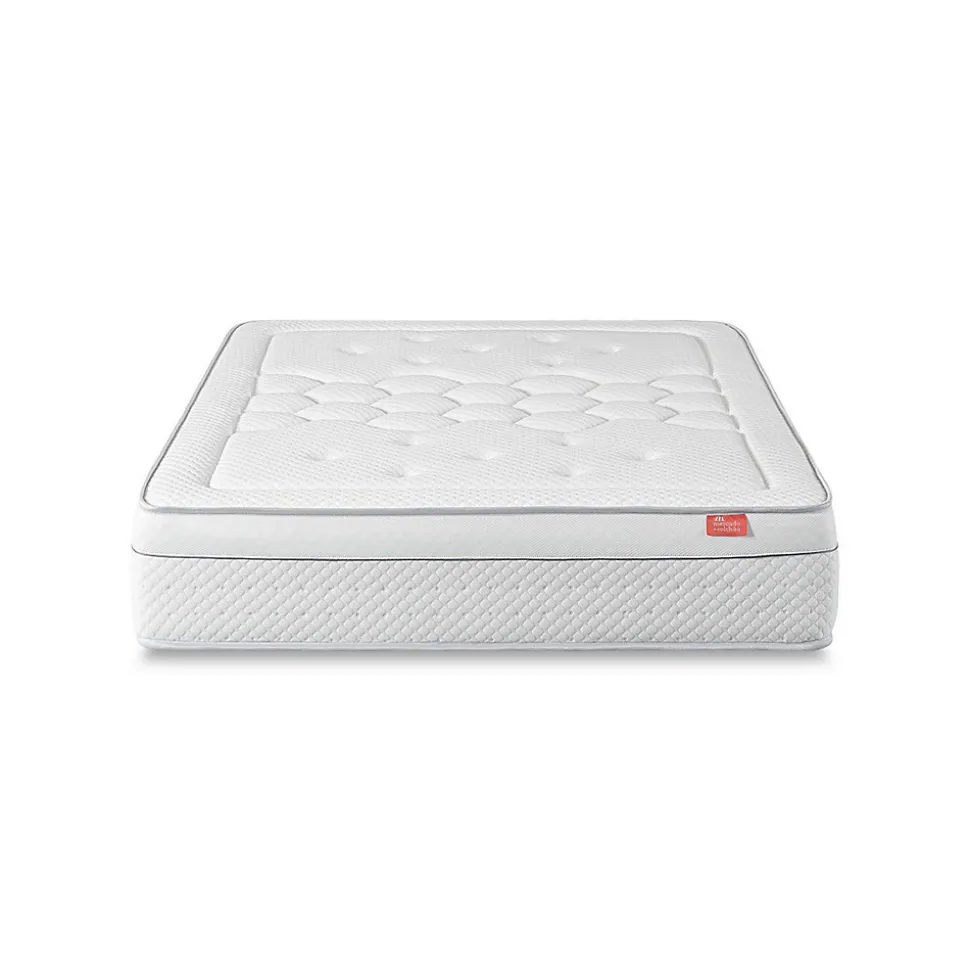 Le matelas Royal Deluxe issu de notre gamme Premium est recommandé aux clients exigeants qui recherchent un matelas dont la fermeté soutient parfaitement le corps tout en offrant une excellente adaptabilité. Il est doté d’un noyau en mousse haute résilience associé à une mousse profilée et un système viscoélastique. Ce système améliore la circulation de l’air à l’intérieur du matelas réduit les points de pression et assure un bon alignement de la colonne vertébrale quelle que soit la position de sommeil. Ce matelas réduit également l’accumulation de chaleur.Caractéristiques du produitLe bloc de mousse assure la fermeté pour une meilleure adaptation au corps et au poids exercé.Le tissu tricoté extensible et épais est respirant.La mousse profilée offre un confort inégalé et améliore considérablement la circulation de l’air.La mousse viscoélastique réduit les points de pression.Le renfort de stabilité en mousse HR35 assure une adaptation et une répartition parfaites de la pression.La bande de tissu respirant favorise la régulation de la température et la circulation de l’air.Hauteur +/- 30 cm