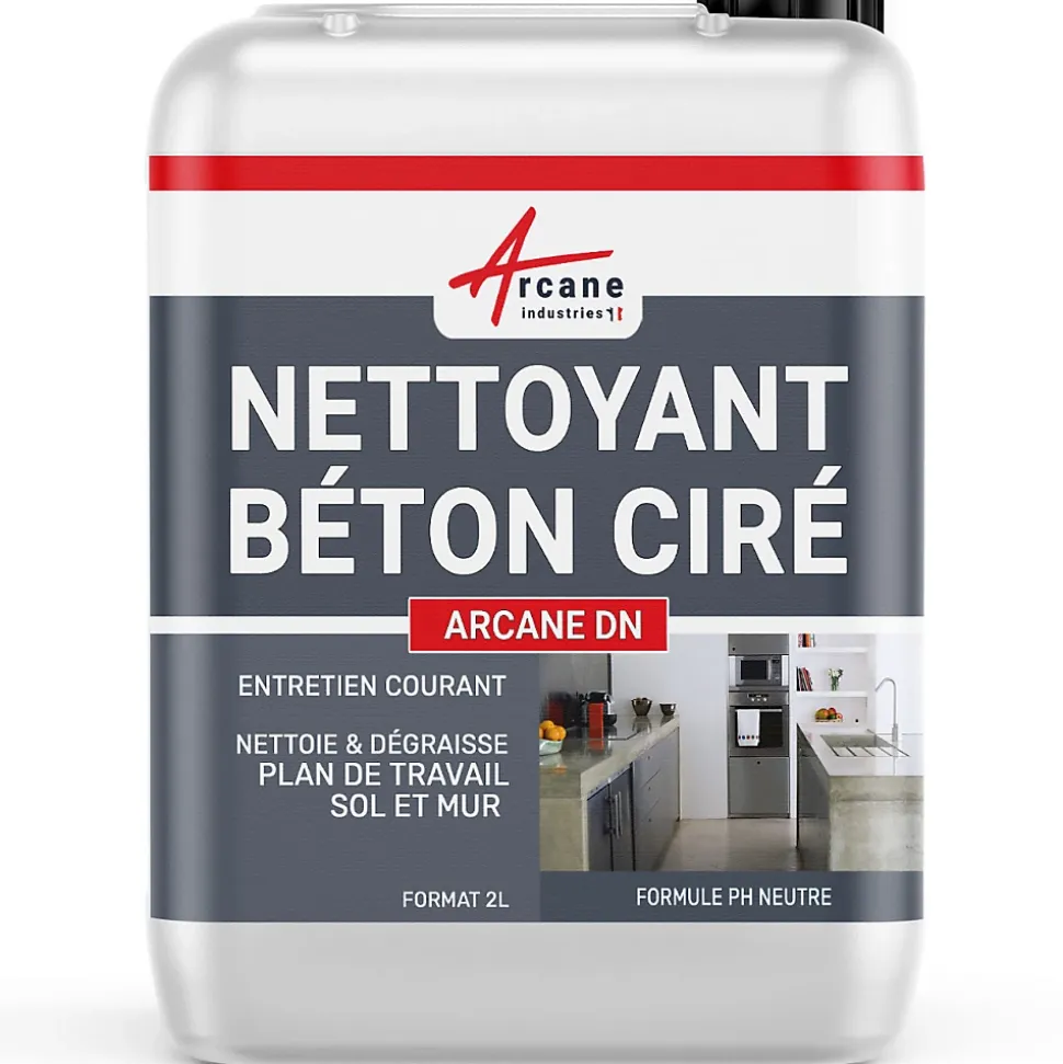 Nettoyant pour béton ciré sol et mur, plan de travail, intérieur extérieur. Non agressif, nettoie, dégraisse, laisse un parfum frais. S’applique sur tous supports.La plateforme ne permet pas encore le regroupement des différents modèles. Pour voir toutes les contenances et toutes les couleurs, tapez ou copier-coller les termes suivants dans la barre de recherche : Nettoyant spécial béton ciréDESTINATIONPour tous les sols, murs et plans de travailEn Intérieur / ExtérieurMATÉRIAUX ÉLIGIBLESSur tous types de surfaces supportant l’eau : Béton, carrelage, pierre naturelle ou reconstituée, bois composite, terre cuite, marbre, grès cérame…Application : En tant que fabricant Français, nous mettons à disposition un document PDF disponible en bas de page vous indiquant les informations produits ainsi que les consignes d’application.CONSOMMATIONLe dosage varie selon les salissures à éliminer. En moyenne un dosage de 3 %, soit 2 bouchons de produit par litre d’eau.Tenir hors de la portée des enfants. Utiliser les Equipements de protection individuelle. Respecter les précautions d’emploi.