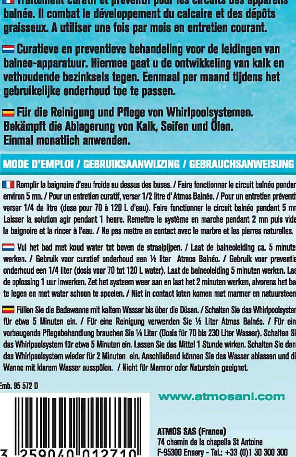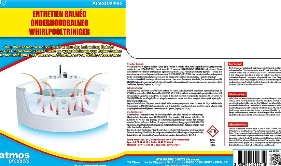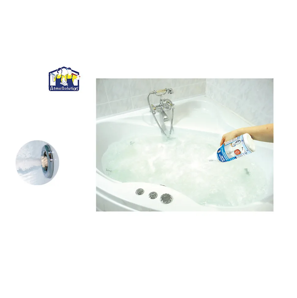 Kit de rénovation des sanitaires Atmosani. Traitement curatif et préventif pour les circuits des appareils balnéo. Pouvoir bactériostatiques. Purifie les circuits.