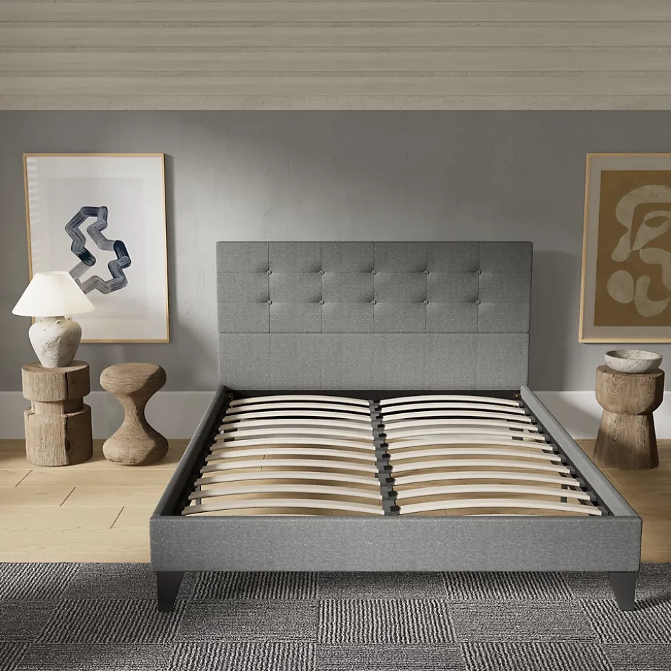 - Description des matériaux : -Le cadre du lit est revêtu d’un tissu de coloris noir, gris, lin ou brun. – Les pieds du lit sont de coloris noir.