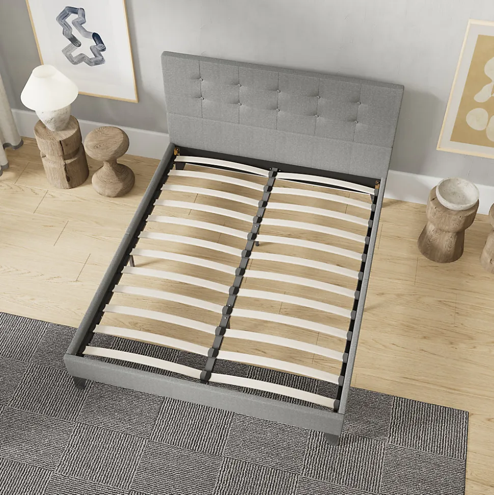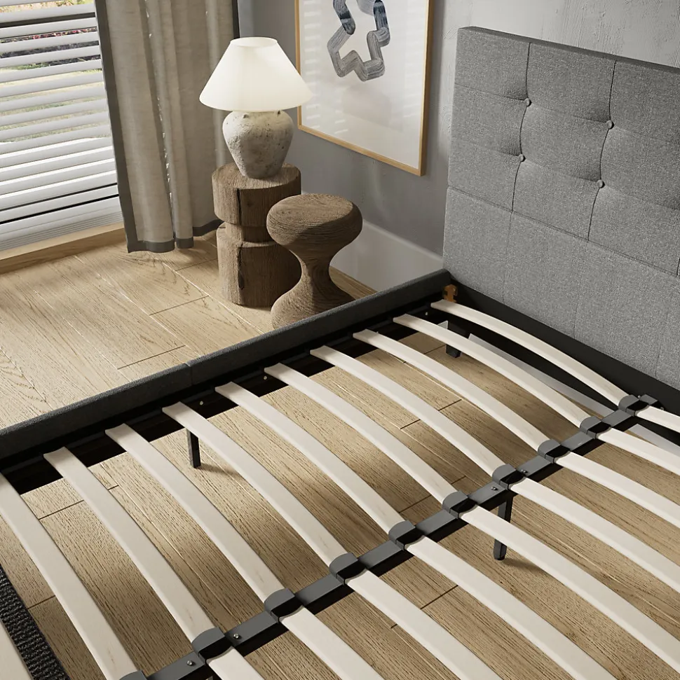 November Sleep Lit 140×190 cm avec tête de lit tissu gris