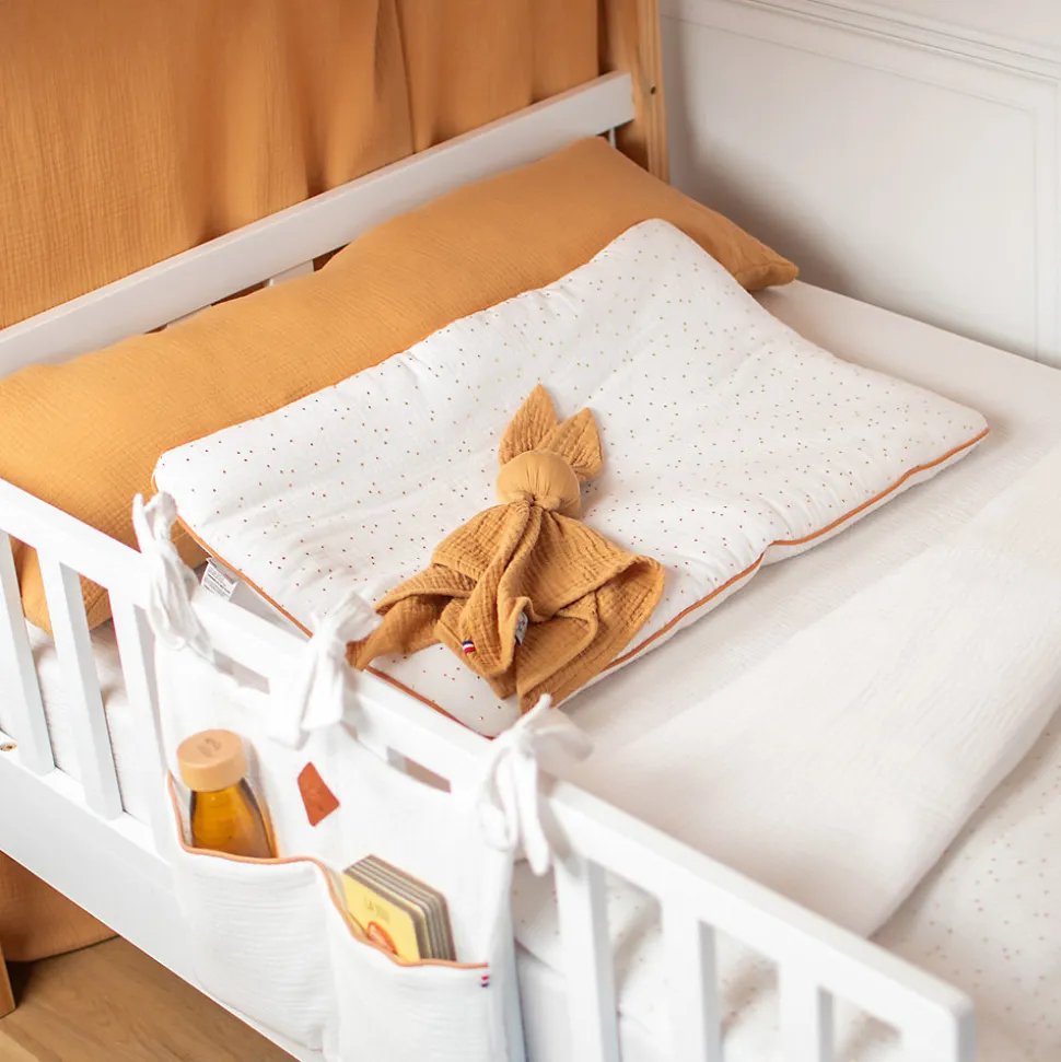 L’oreiller plat en gaze de coton Jeanne, 100% Made in France !Dernière innovation, un oreiller plat prêt à dormir, doux, léger et confortable pour apporter encore plus de confort à votre enfant durant ces nuits. Véritable tendance textile pour les enfants, le prêt à dormir facilitera votre quotidien de parents, un procédé garantissant durabilité et résistance.L’oreiller plat Jeanne offrira à votre enfant un sommeil optimal et confortable, essentiel pour veiller à son bon développement. Le remplissage est cousu dans la literie, pouvant donc être laver en machine sans endommager son aspect soyeux. Un véritable gain de temps pour les parents !Un linge de lit de haute qualité, garantissant un confort optimal pour les douces nuits de votre enfant. Fabriqué à partir de matières certifiées, la gaze de coton apporte de multiples bienfaits pour bébé : à la fois doux et résistant permettant à la peau de bébé de respirer en absorbant l’excès d’humidité, un tissu hypoallergéniques et antibactériens.Notre collection Jeanne en gaze de coton est conçue et fabriquée à partir dans nos ateliers avec amour et expertise. Nous veillons à ce que chaque produit dispose de finitions soignées pour vous offrir un produit de qualité.Pour en savoir un peu plus sur l’oreiller plat Jeanne en gaze de coton, 100% made in France :• Un linge de lit facile au quotidien, léger, confortable et nomade : emporter votre oreillerpartout où vous le souhaitez