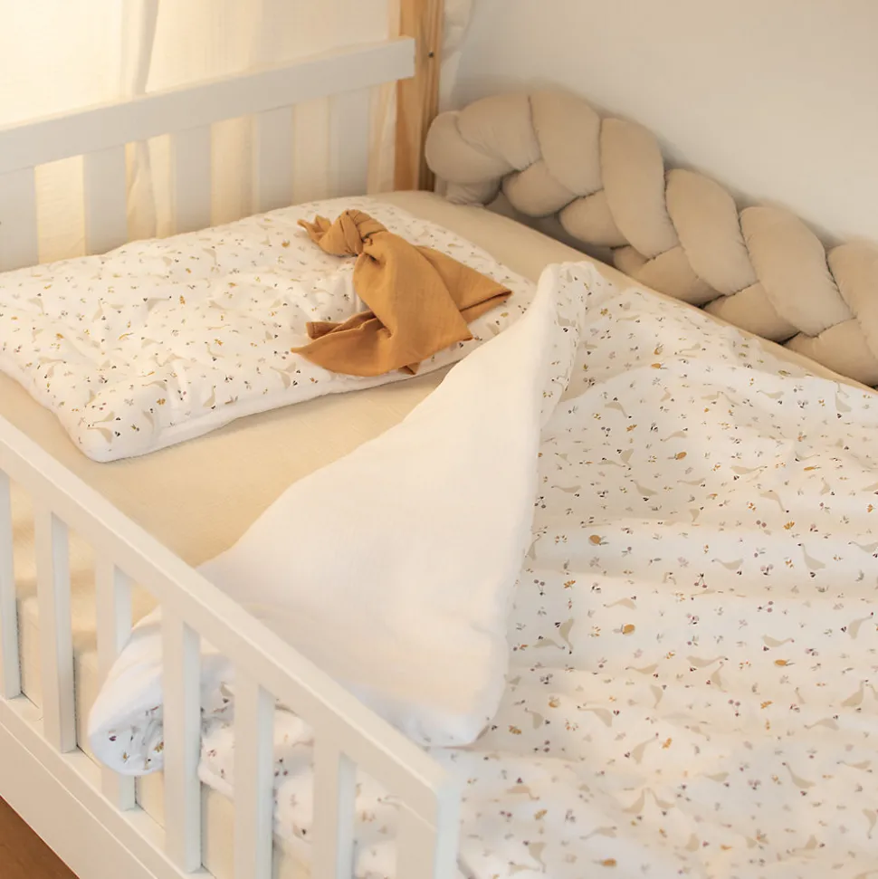 - Pratique et Facile à Entretenir : Remplissage cousu dans la literie, lavable en machine sans altérer son aspect soyeux, offrant un véritable gain de temps pour les parents.